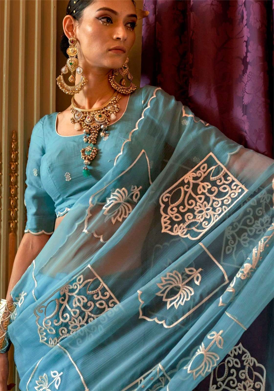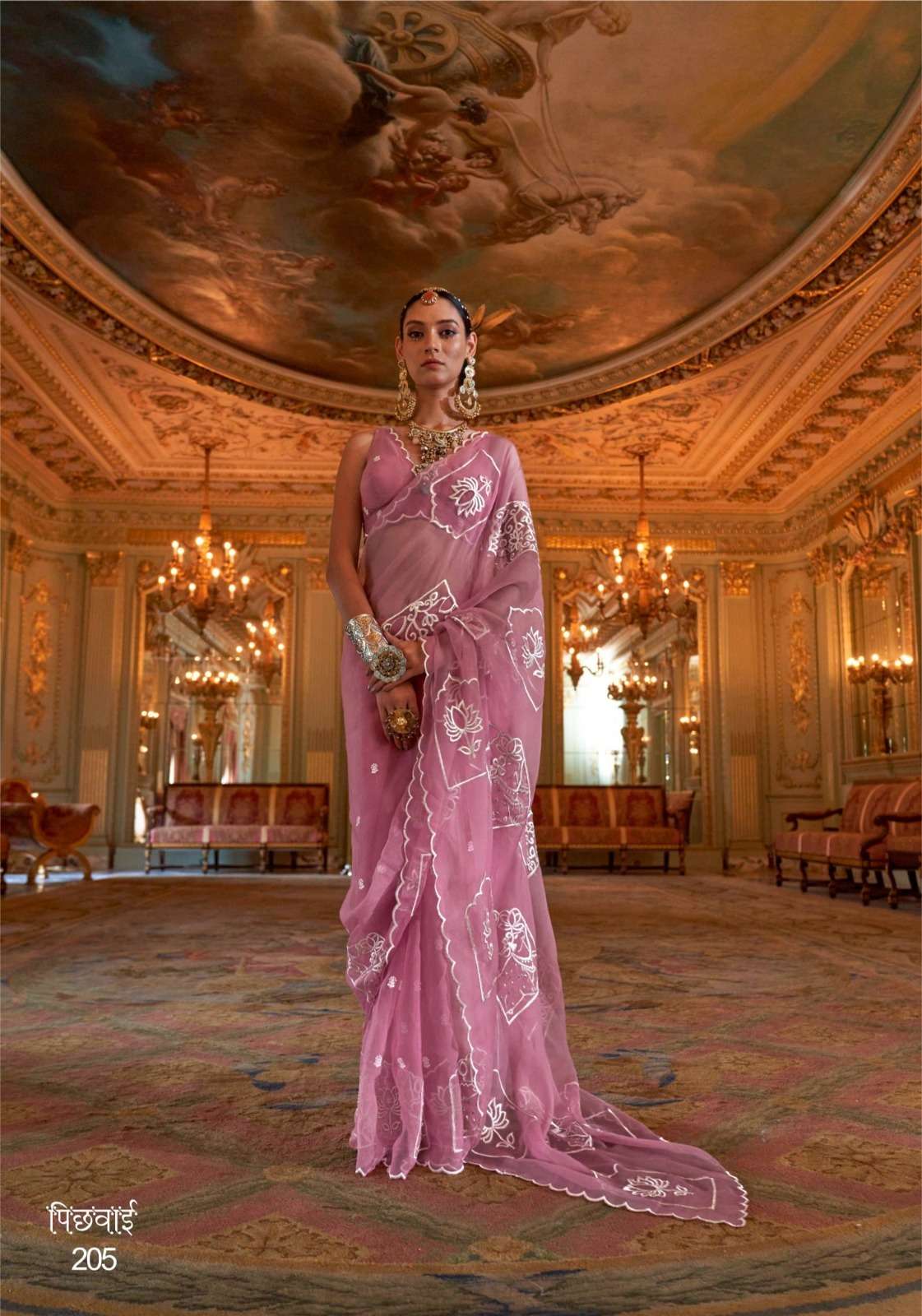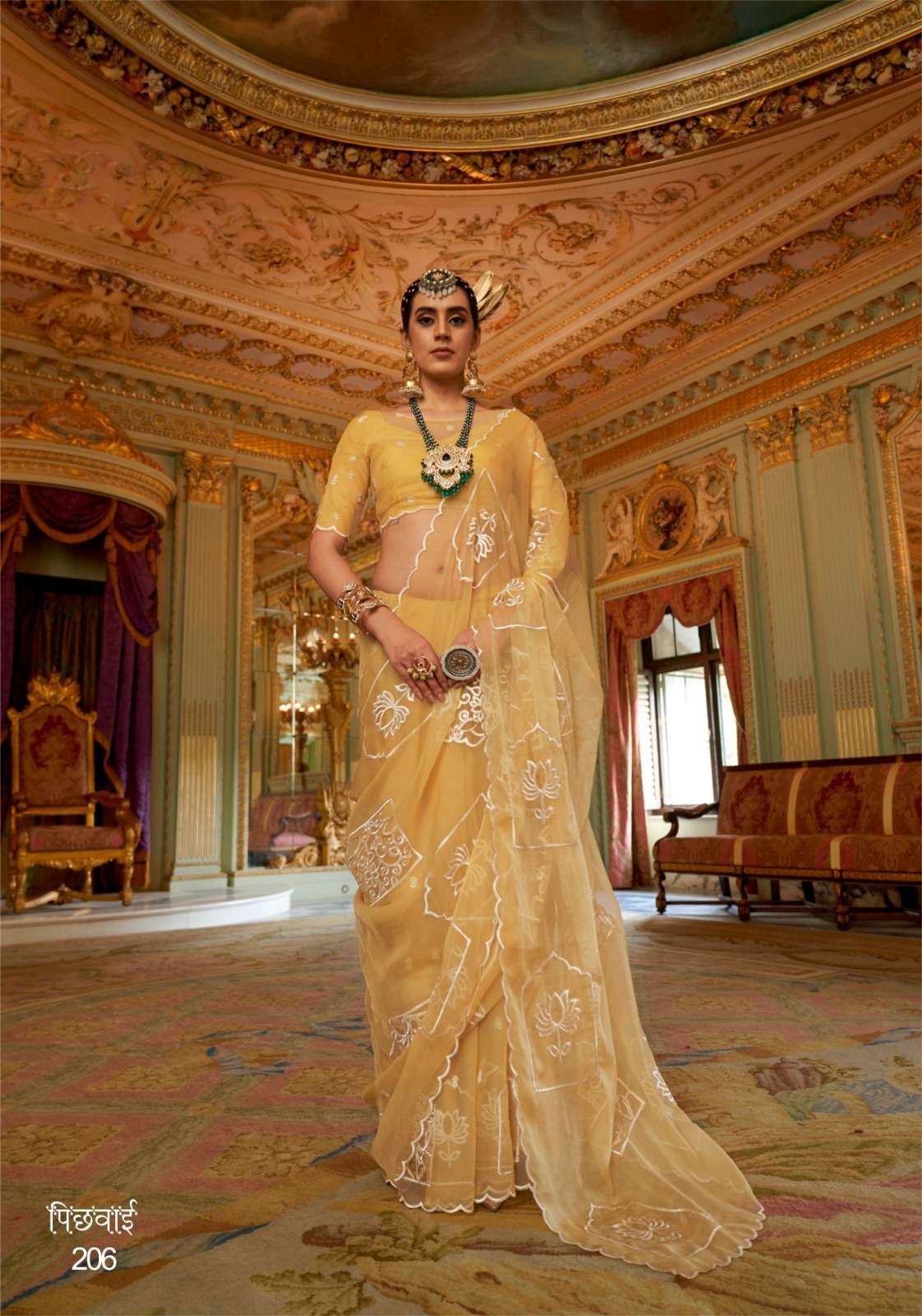 BRAND - KALAKAAND CATALOG - PICHHWAI-1 SERIES – 201 TO 206 6-colour set Fabric- Ruby Chiffon Multi thread embroidery work Blouse- Matching ruby silk multi thread embroidery work Rate-1400/- PER PCS GST EXTRA SINGLE AVAILABLE |