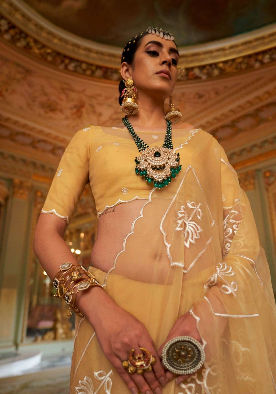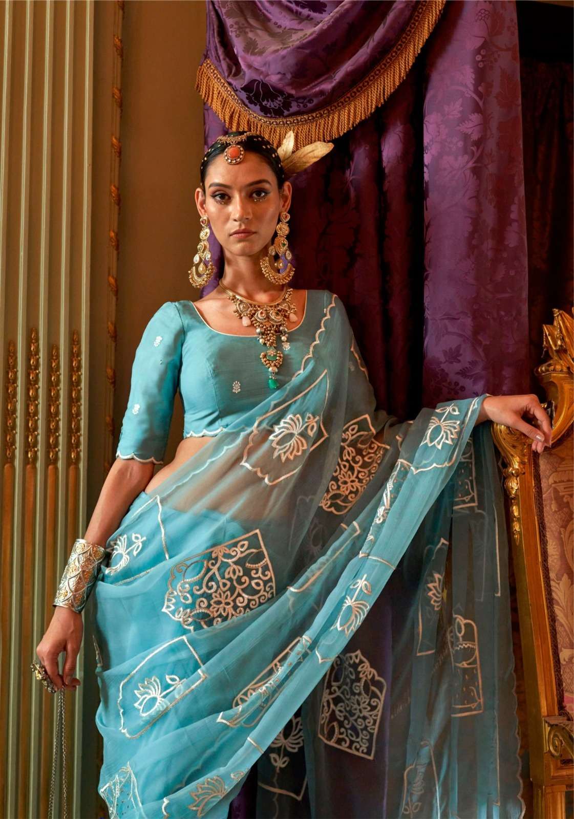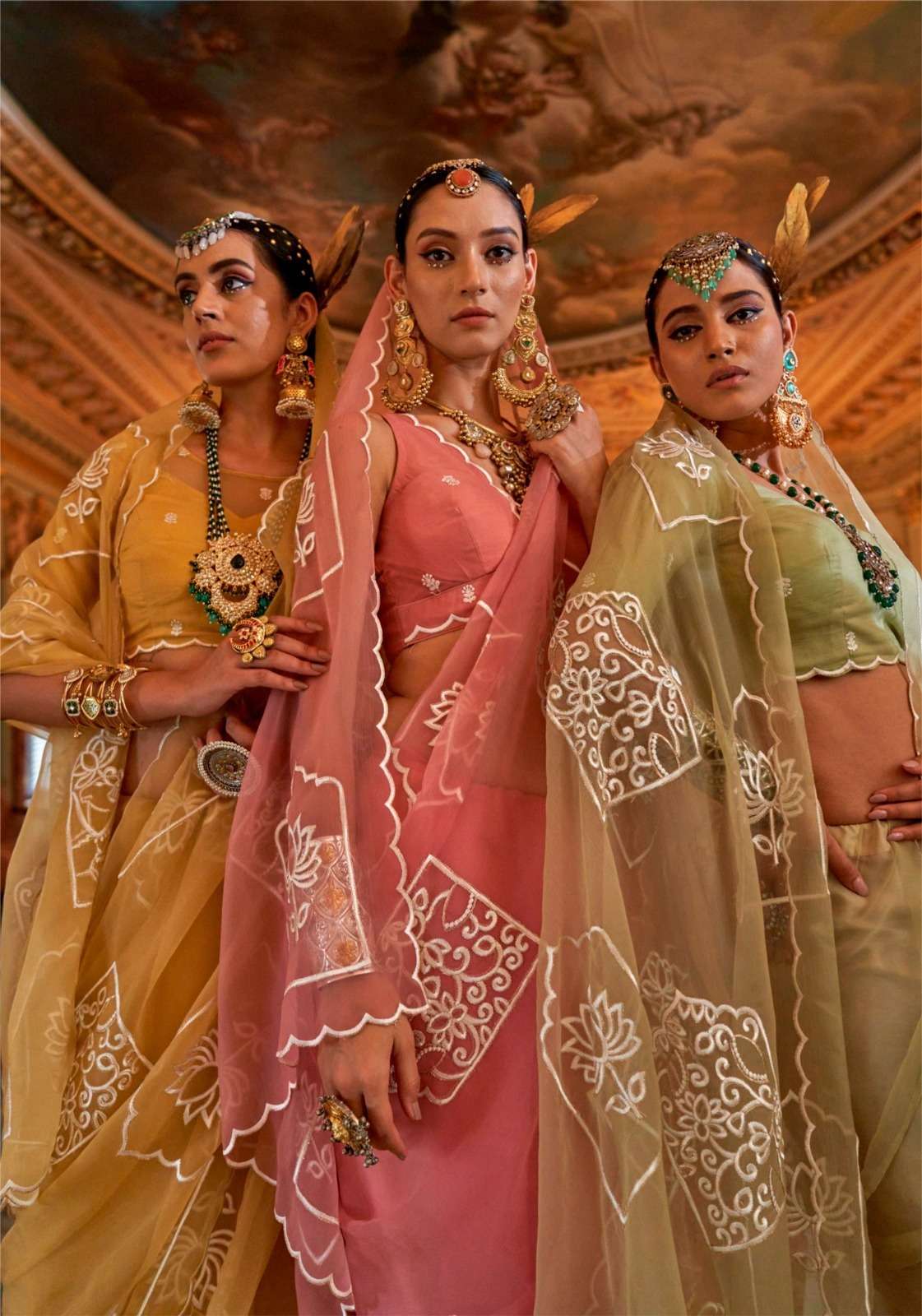 BRAND - KALAKAAND CATALOG - PICHHWAI-1 SERIES – 201 TO 206 6-colour set Fabric- Ruby Chiffon Multi thread embroidery work Blouse- Matching ruby silk multi thread embroidery work Rate-1400/- PER PCS GST EXTRA SINGLE AVAILABLE |