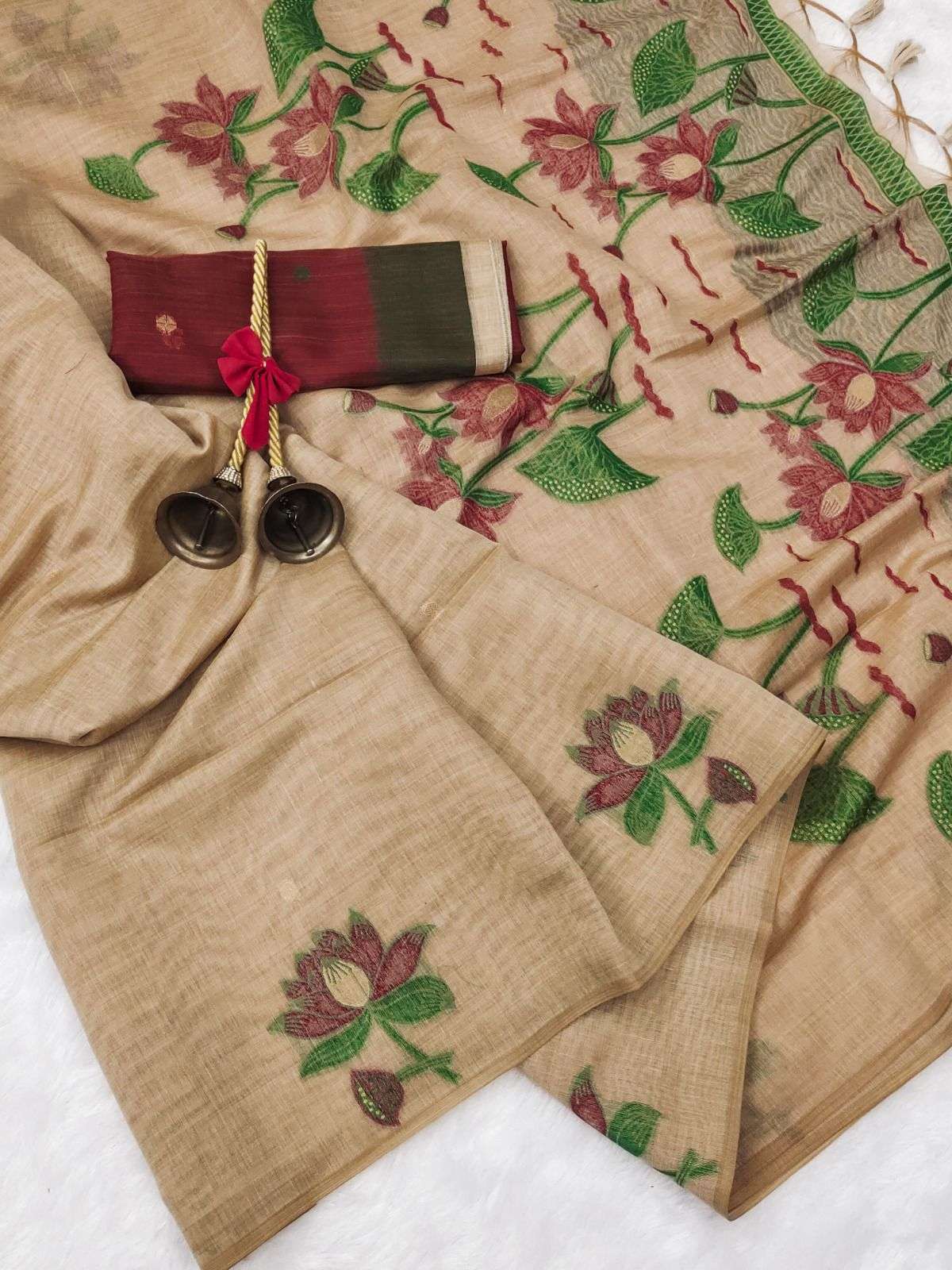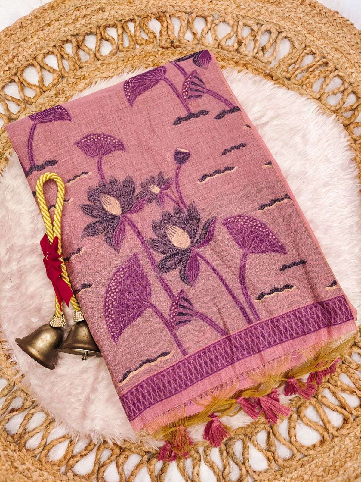 Embrace understated elegance with this premium soft Muga Cotton saree, crafted for all-day comfort and graceful drape. It features a classic colourful Pichwai-inspired lotus weaving pallu, enhanced with a decently toned border and all-over delicate weaving buttas for a refined look. Finished with fancy tassels and paired with a contrast blouse piece, this saree is perfect for festive wear, office elegance, and traditional occasions. 📦 Ready stock available |