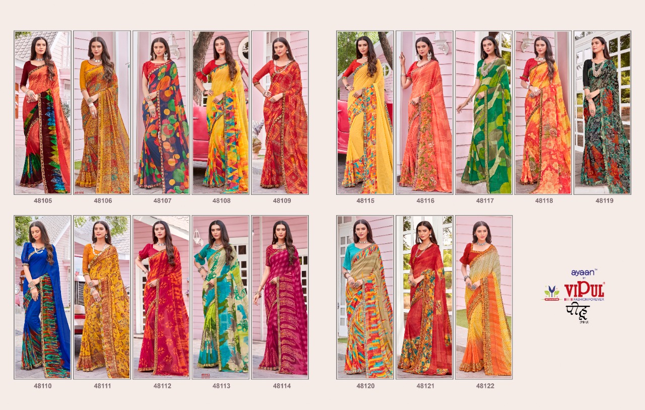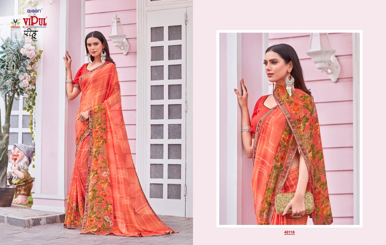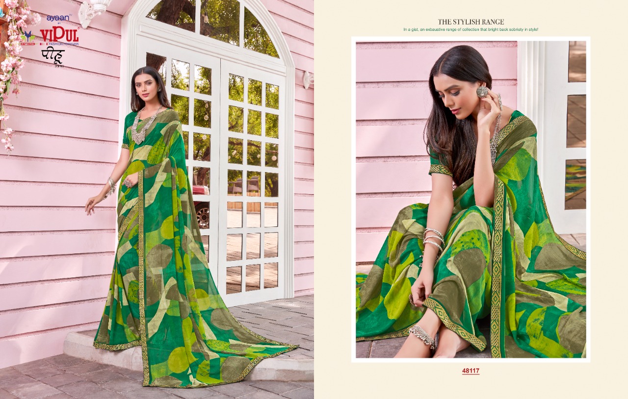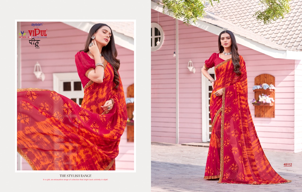 Buy Online Pihu By Vipul Saree Wholesaler Supplier Surat 18 Pcs of Full Catalogue at Wholesale Price. Looking for Pihu By Vipul Saree Wholesaler Supplier Surat Full Catalouge at Best Price? Buy Now Pihu By Vipul Saree Wholesaler Supplier Surat at Wholesale Rate of Rs 10710 with Total 18 Pcs from authroized dealer and supplier of VIPUL Brand. Cost of Each piece is just only Rs 595 which is very low and affordable price to resale the product in your retail store ,This is Surat based Wholesale Supplier & Dealer of VIPUL Brand. Click on Brand name to Know more about VIPUL Brand's products.Call or Whatsapp on 9898838984 for booking or enquiry