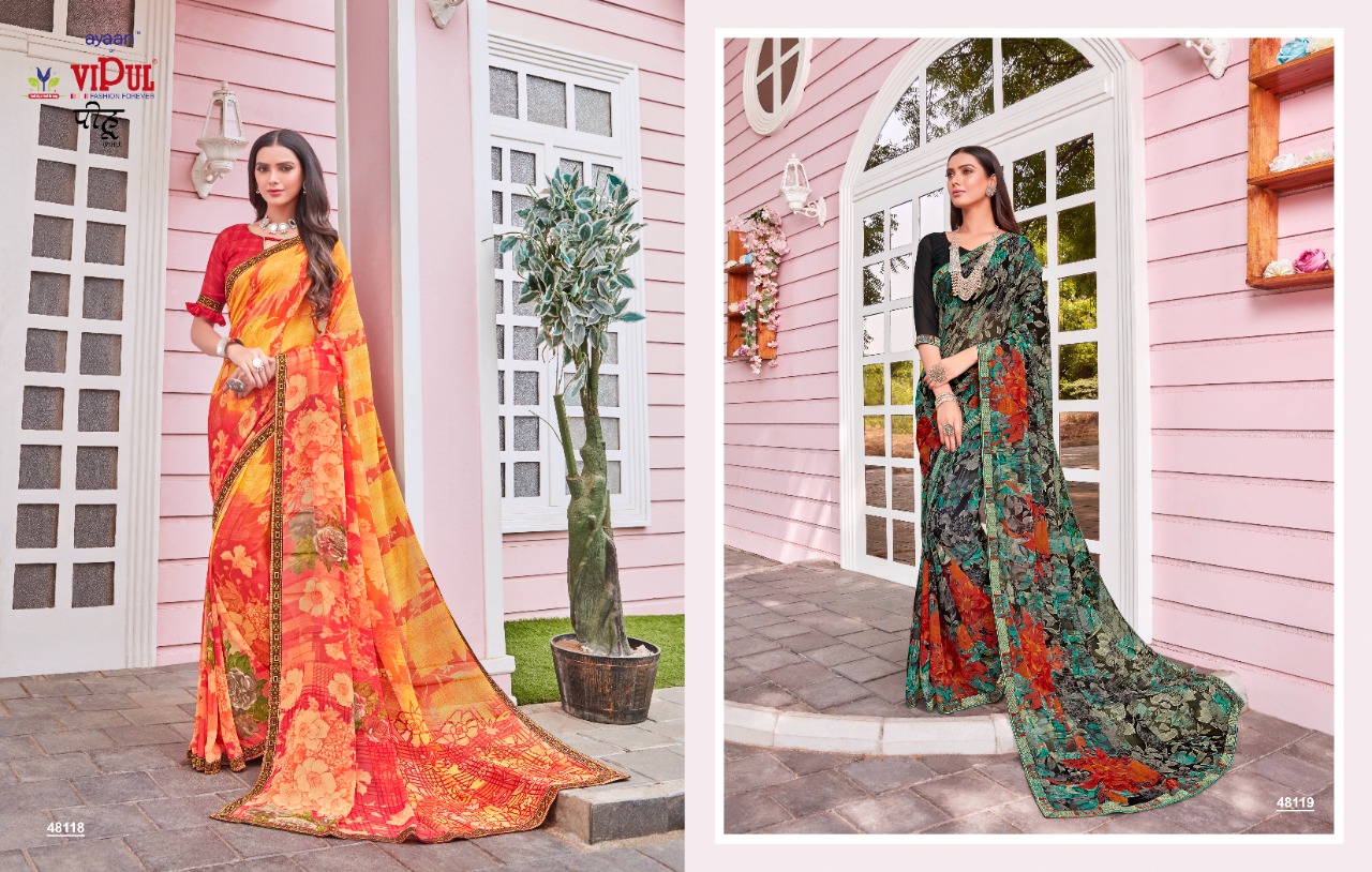 *VIPUL* presents.. *PIHU* *Fancy georget printed saree with lace border* *RATE-545/-* SET TO SET Today Delivery 5%GST * Online selling rate must be 595 on your website or portal * Please note . Set to set |