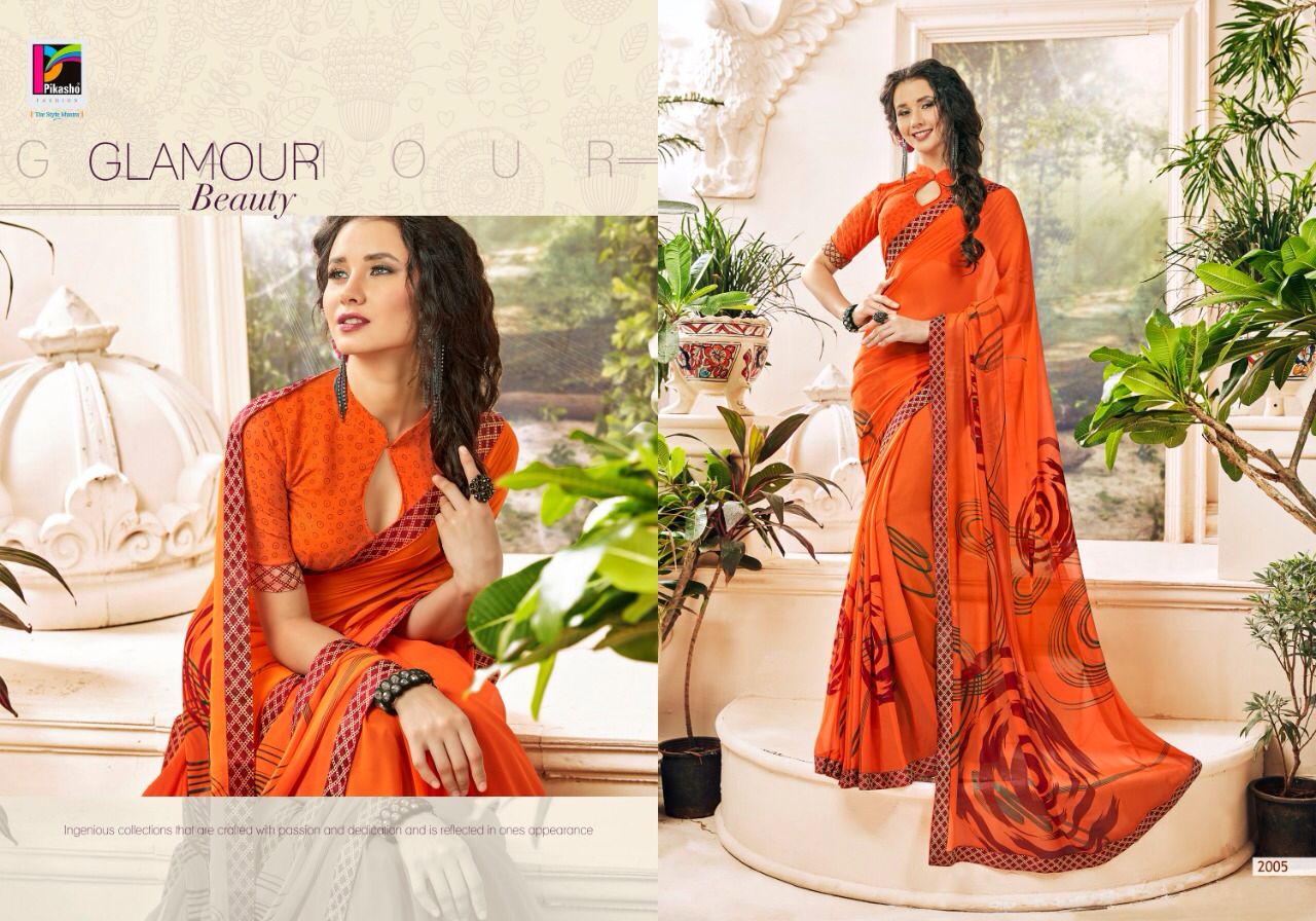 Buy Online Pikasho Series 2001 To 2013 Georgette Printed Sarees Wholesale Supplier And Dealer Surat 13 Pcs of Full Catalogue at Wholesale Price. Looking for Pikasho Series 2001 To 2013 Georgette Printed Sarees Wholesale Supplier And Dealer Surat Full Catalouge at Best Price? Buy Now Pikasho Series 2001 To 2013 Georgette Printed Sarees Wholesale Supplier And Dealer Surat at Wholesale Rate of Rs 6110 with Total 13 Pcs from authroized dealer and supplier of Pikasho Fashion Brand. Cost of Each piece is just only Rs 470 which is very low and affordable price to resale the product in your retail store ,This is Surat based Wholesale Supplier & Dealer of Pikasho Fashion Brand. Click on Brand name to Know more about Pikasho Fashion Brand's products.Call or Whatsapp on 9898838984 for booking or enquiry