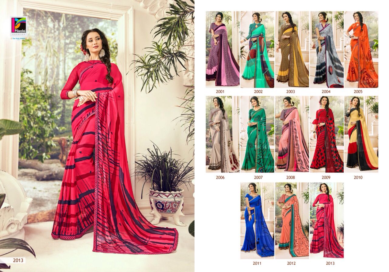 Pikasho Series 2001 To 2013 Georgette Printed Sarees Wholesale Supplier And Dealer Surat