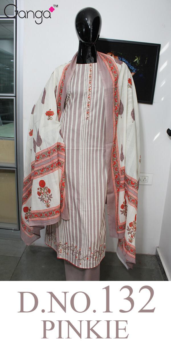 Pinkie 132 By Ganga Cotton Printed Suits Wholesale Supplier Gujarat