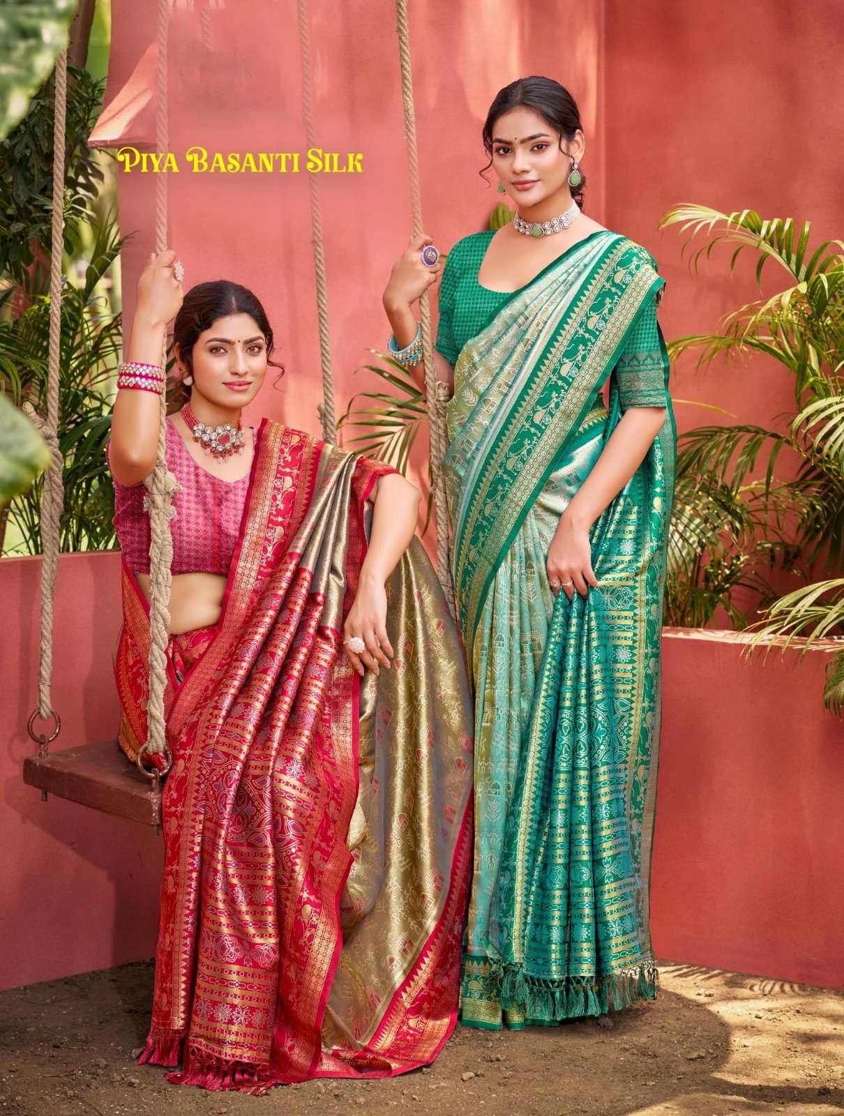 Piya Basanti Silk Series 1001 To 1006 by Bunawat saree collection manufacturer Surat