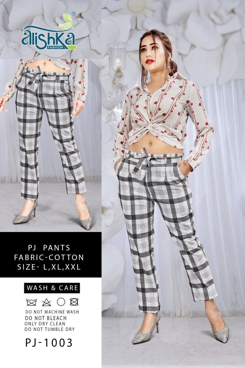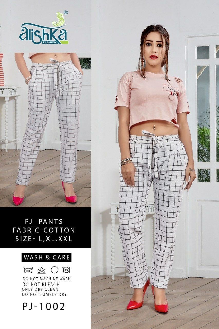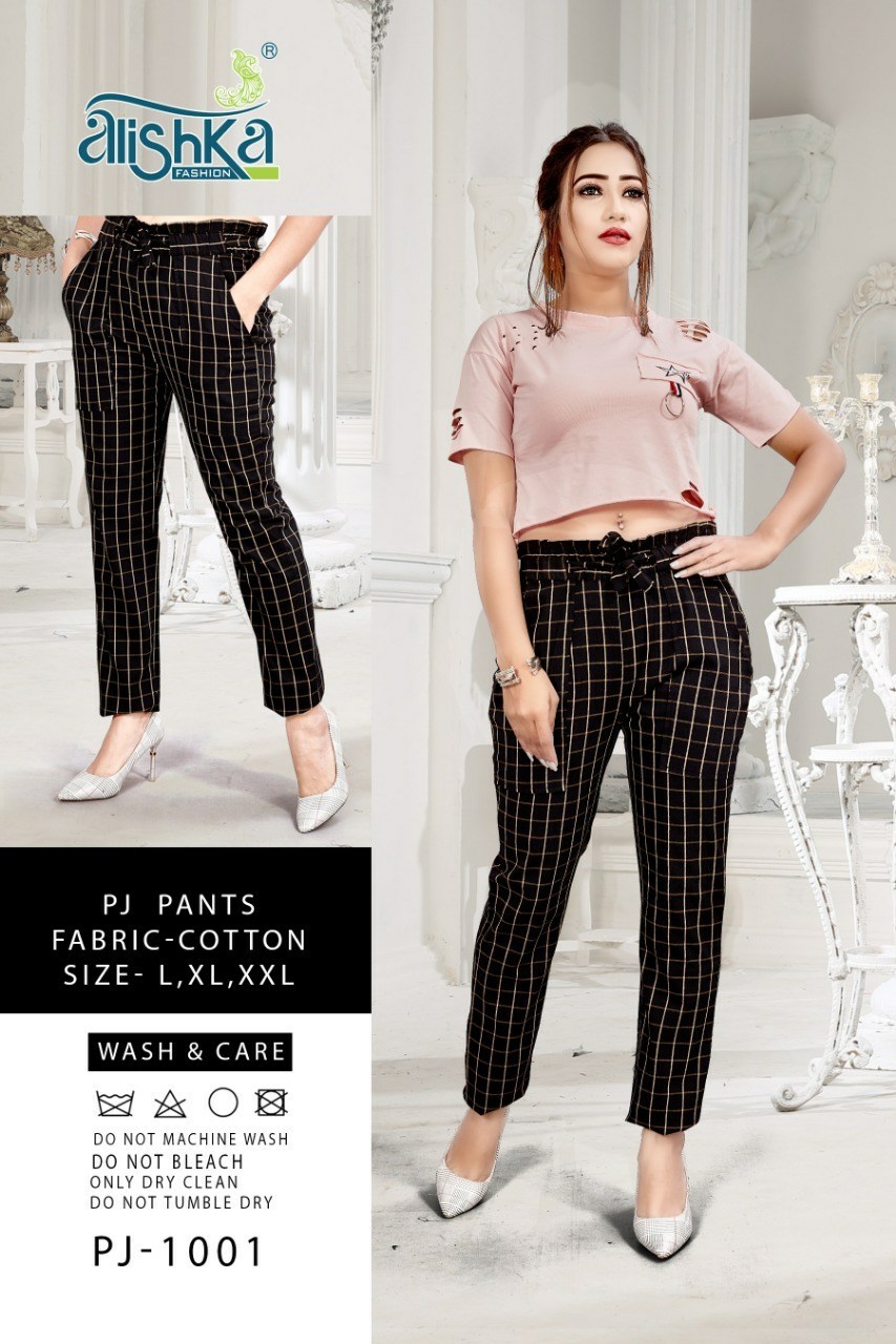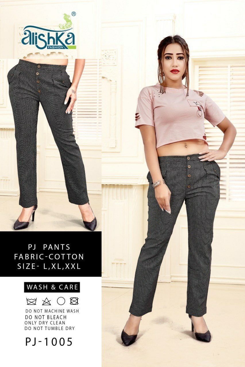 Buy Online Pj Pants By Alishka Cotton Pant Wholesale Supplier Surat 5 Pcs of Full Catalogue at Wholesale Price. Looking for Pj Pants By Alishka Cotton Pant Wholesale Supplier Surat Full Catalouge at Best Price? Buy Now Pj Pants By Alishka Cotton Pant Wholesale Supplier Surat at Wholesale Rate of Rs 1475 with Total 5 Pcs from authroized dealer and supplier of Brand. Cost of Each piece is just only Rs 295 which is very low and affordable price to resale the product in your retail store ,This is Surat based Wholesale Supplier & Dealer of Brand. Click on Brand name to Know more about Brand's products.Call or Whatsapp on 9898838984 for booking or enquiry