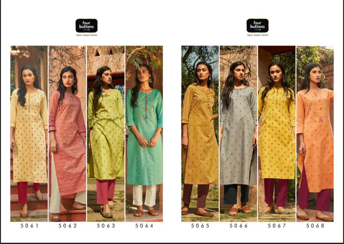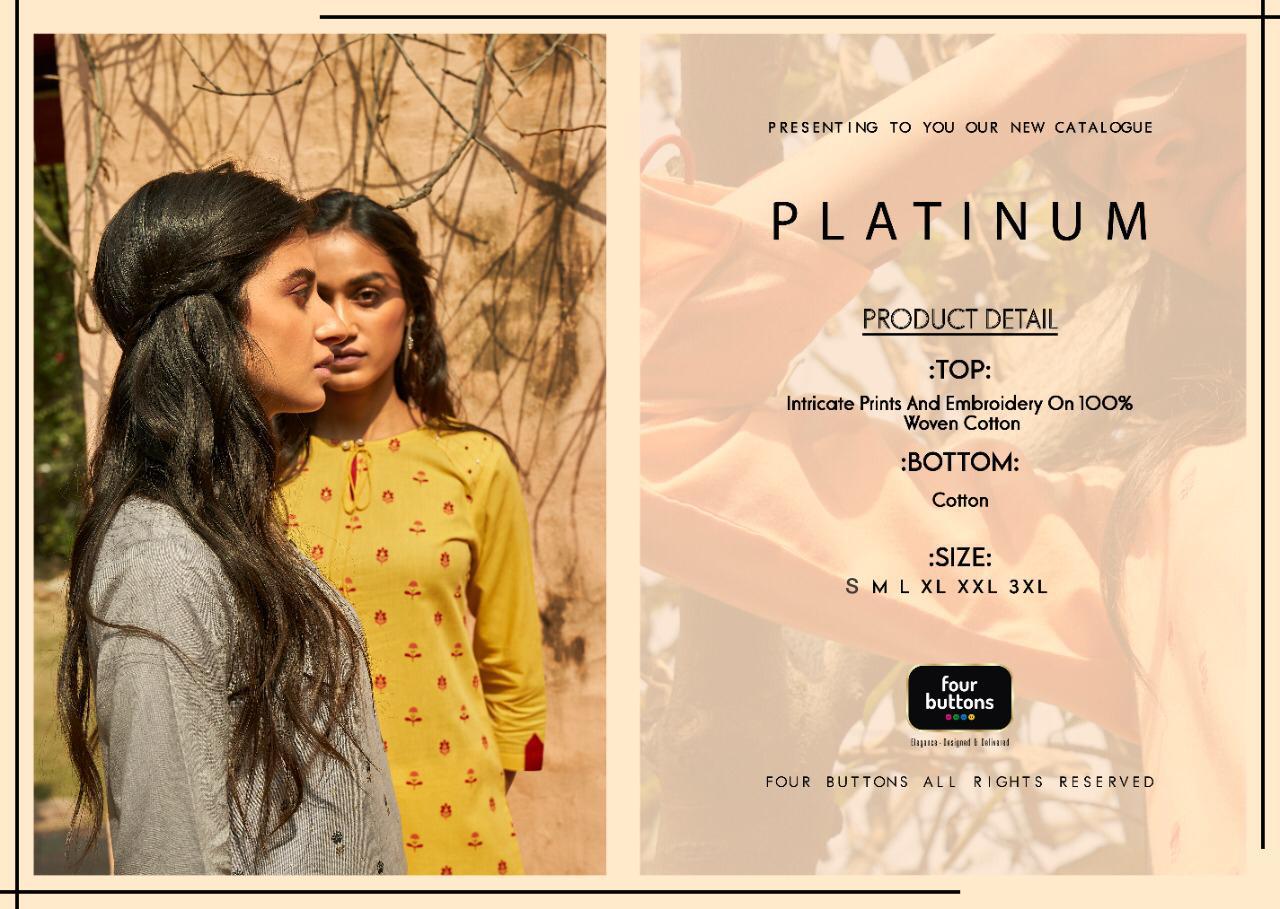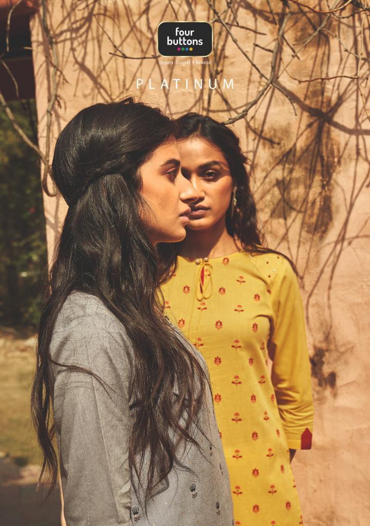 Buy Online Platinum By Four Buttons Kurtis With Bottom Wholesale Supplier And Dealer Surat 8 Pcs of Full Catalogue at Wholesale Price. Looking for Platinum By Four Buttons Kurtis With Bottom Wholesale Supplier And Dealer Surat Full Catalouge at Best Price? Buy Now Platinum By Four Buttons Kurtis With Bottom Wholesale Supplier And Dealer Surat at Wholesale Rate of Rs 5592 with Total 8 Pcs from authroized dealer and supplier of FOUR BUTTONS Brand. Cost of Each piece is just only Rs 699 which is very low and affordable price to resale the product in your retail store ,This is Surat based Wholesale Supplier & Dealer of FOUR BUTTONS Brand. Click on Brand name to Know more about FOUR BUTTONS Brand's products.Call or Whatsapp on 9898838984 for booking or enquiry