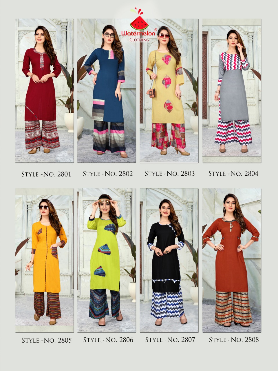 Buy Online Platinum Plazzo Vol 2 By Watermelon Reyon Kurtis With Plazzo Wholesale Supplier Surat 8 Pcs of Full Catalogue at Wholesale Price. Looking for Platinum Plazzo Vol 2 By Watermelon Reyon Kurtis With Plazzo Wholesale Supplier Surat Full Catalouge at Best Price? Buy Now Platinum Plazzo Vol 2 By Watermelon Reyon Kurtis With Plazzo Wholesale Supplier Surat at Wholesale Rate of Rs 4240 with Total 8 Pcs from authroized dealer and supplier of WATERMELON Brand. Cost of Each piece is just only Rs 530 which is very low and affordable price to resale the product in your retail store ,This is Surat based Wholesale Supplier & Dealer of WATERMELON Brand. Click on Brand name to Know more about WATERMELON Brand's products.Call or Whatsapp on 9898838984 for booking or enquiry