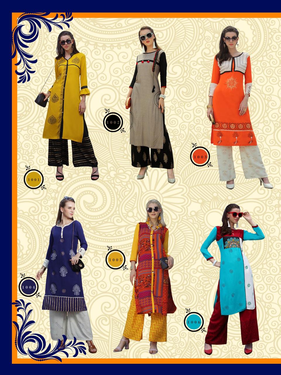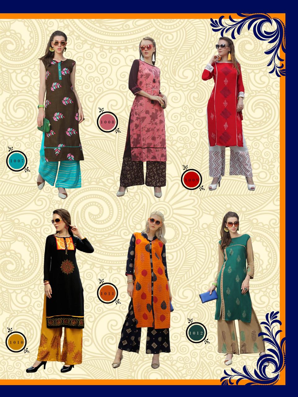 Buy Online Plazo City Vol 1 By Pk Heavy Reyon Kurtis With Plazzo Wholesale Supplier India 12 Pcs of Full Catalogue at Wholesale Price. Looking for Plazo City Vol 1 By Pk Heavy Reyon Kurtis With Plazzo Wholesale Supplier India Full Catalouge at Best Price? Buy Now Plazo City Vol 1 By Pk Heavy Reyon Kurtis With Plazzo Wholesale Supplier India at Wholesale Rate of Rs 0 with Total 12 Pcs from authroized dealer and supplier of Brand. Cost of Each piece is just only Rs 0 which is very low and affordable price to resale the product in your retail store ,This is Surat based Wholesale Supplier & Dealer of Brand. Click on Brand name to Know more about Brand's products.Call or Whatsapp on 9898838984 for booking or enquiry