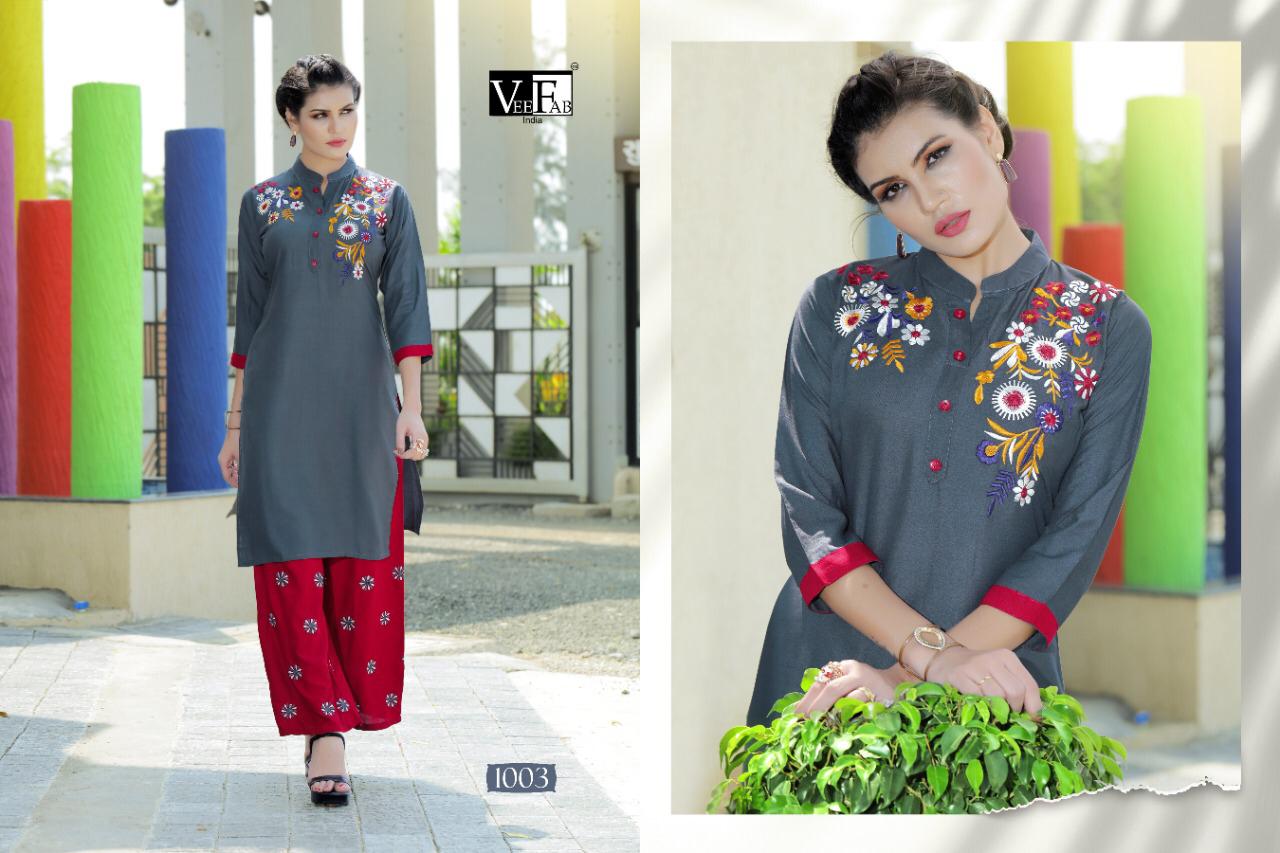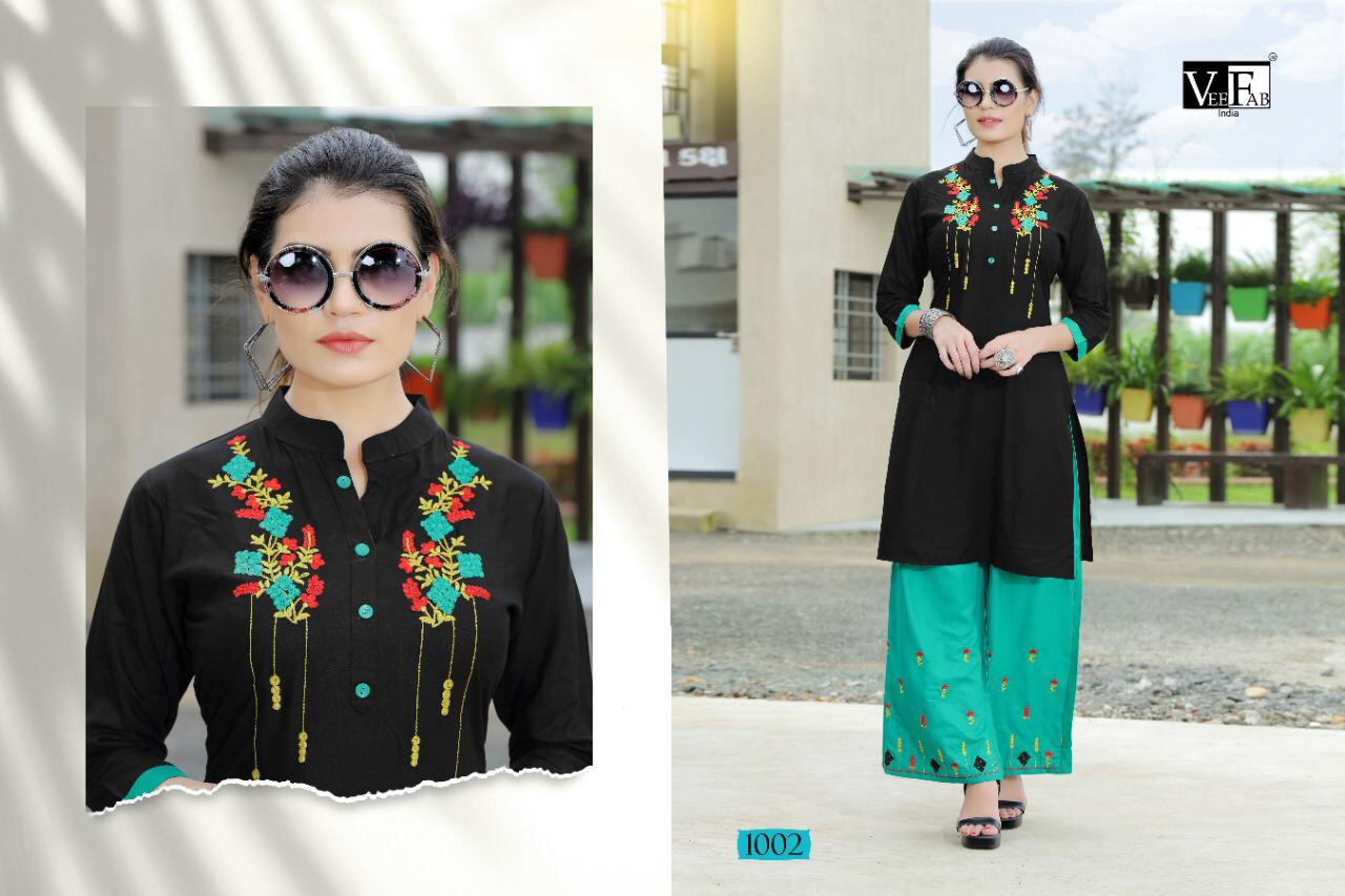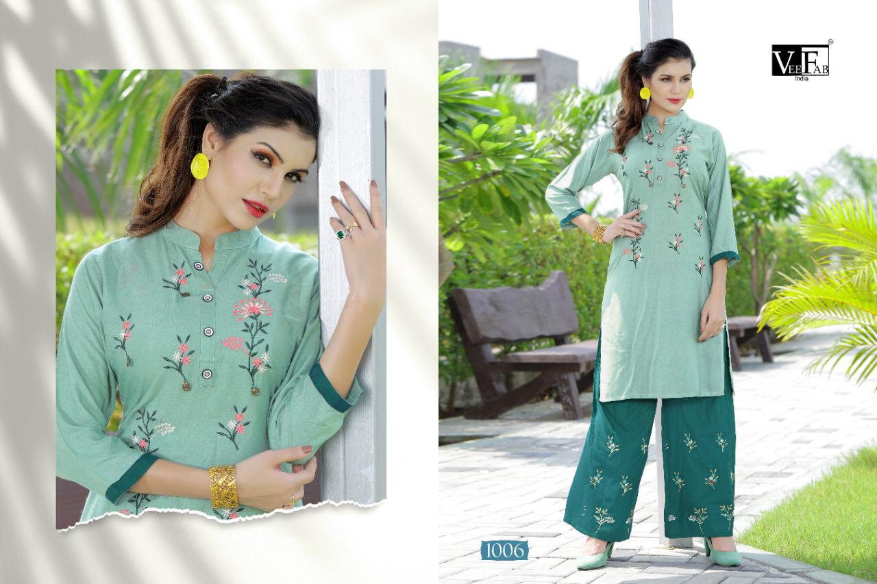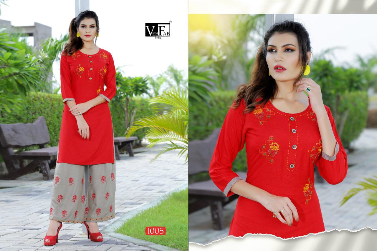 Buy Online Plazzo Bar By Vee Fab India Reyon Kurtis With Plazzo Wholesale Supplier Surat 10 Pcs of Full Catalogue at Wholesale Price. Looking for Plazzo Bar By Vee Fab India Reyon Kurtis With Plazzo Wholesale Supplier Surat Full Catalouge at Best Price? Buy Now Plazzo Bar By Vee Fab India Reyon Kurtis With Plazzo Wholesale Supplier Surat at Wholesale Rate of Rs 6090 with Total 10 Pcs from authroized dealer and supplier of Veefab india Brand. Cost of Each piece is just only Rs 609 which is very low and affordable price to resale the product in your retail store ,This is Surat based Wholesale Supplier & Dealer of Veefab india Brand. Click on Brand name to Know more about Veefab india Brand's products.Call or Whatsapp on 9898838984 for booking or enquiry