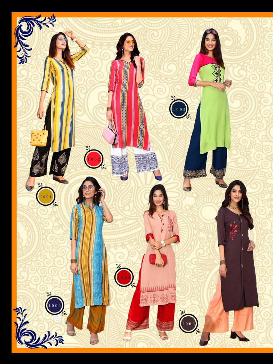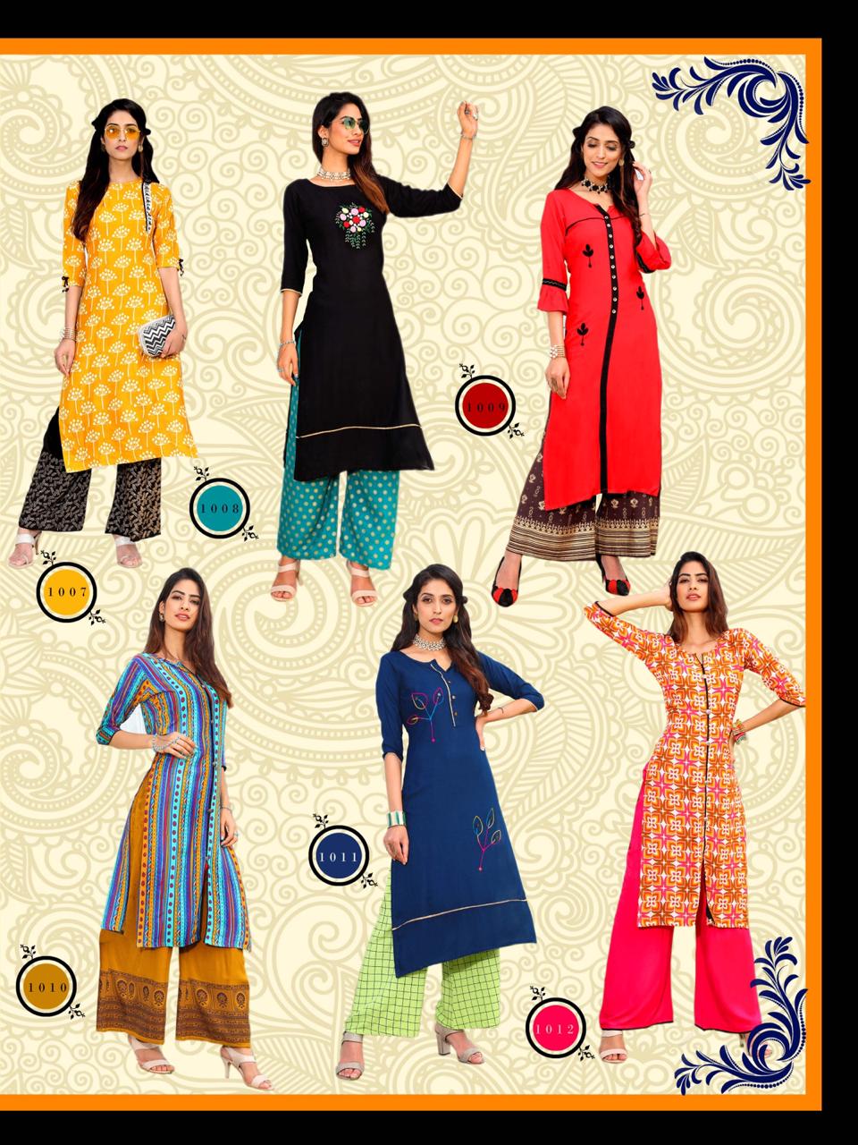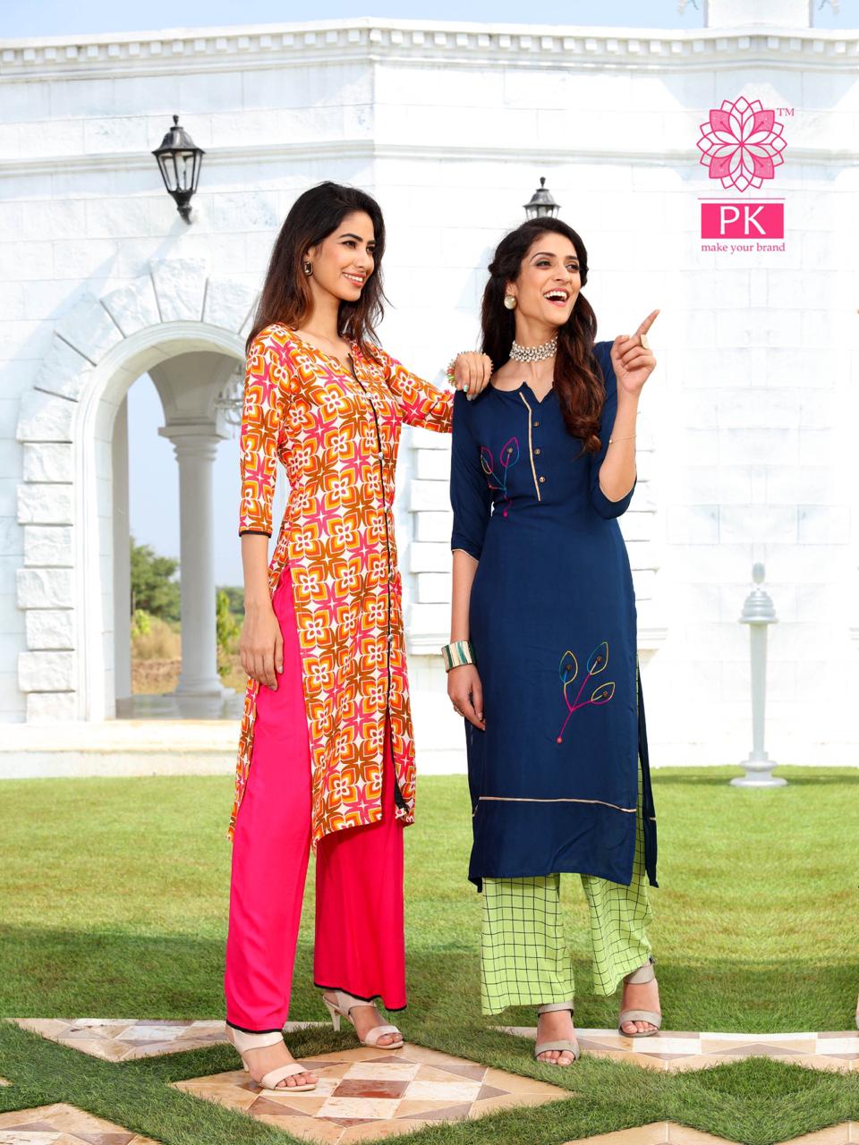 Buy Online Plazzo City Vol 2 By Pk Reyon Printed Kurtis With Plazzo Wholesale Supplier Surat 12 Pcs of Full Catalogue at Wholesale Price. Looking for Plazzo City Vol 2 By Pk Reyon Printed Kurtis With Plazzo Wholesale Supplier Surat Full Catalouge at Best Price? Buy Now Plazzo City Vol 2 By Pk Reyon Printed Kurtis With Plazzo Wholesale Supplier Surat at Wholesale Rate of Rs 6060 with Total 12 Pcs from authroized dealer and supplier of Brand. Cost of Each piece is just only Rs 505 which is very low and affordable price to resale the product in your retail store ,This is Surat based Wholesale Supplier & Dealer of Brand. Click on Brand name to Know more about Brand's products.Call or Whatsapp on 9898838984 for booking or enquiry
