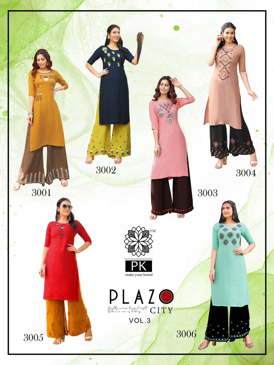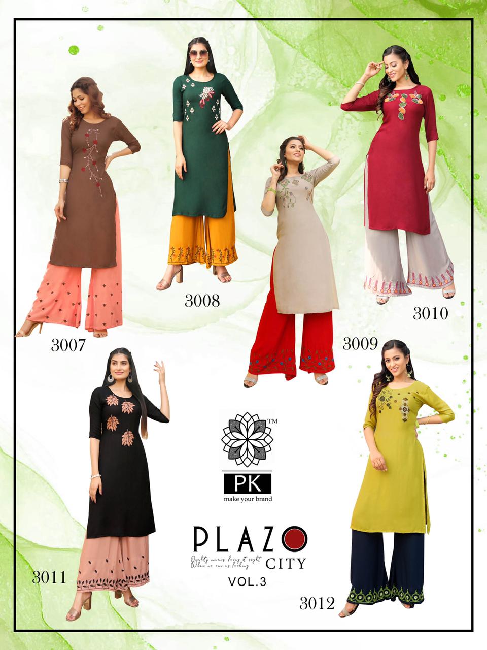 Buy Online Plazzo City Vol 3 By Pk Manufacturer And Dealer From Surat 12 Pcs of Full Catalogue at Wholesale Price. Looking for Plazzo City Vol 3 By Pk Manufacturer And Dealer From Surat Full Catalouge at Best Price? Buy Now Plazzo City Vol 3 By Pk Manufacturer And Dealer From Surat at Wholesale Rate of Rs 5040 with Total 12 Pcs from authroized dealer and supplier of Brand. Cost of Each piece is just only Rs 420 which is very low and affordable price to resale the product in your retail store ,This is Surat based Wholesale Supplier & Dealer of Brand. Click on Brand name to Know more about Brand's products.Call or Whatsapp on 9898838984 for booking or enquiry