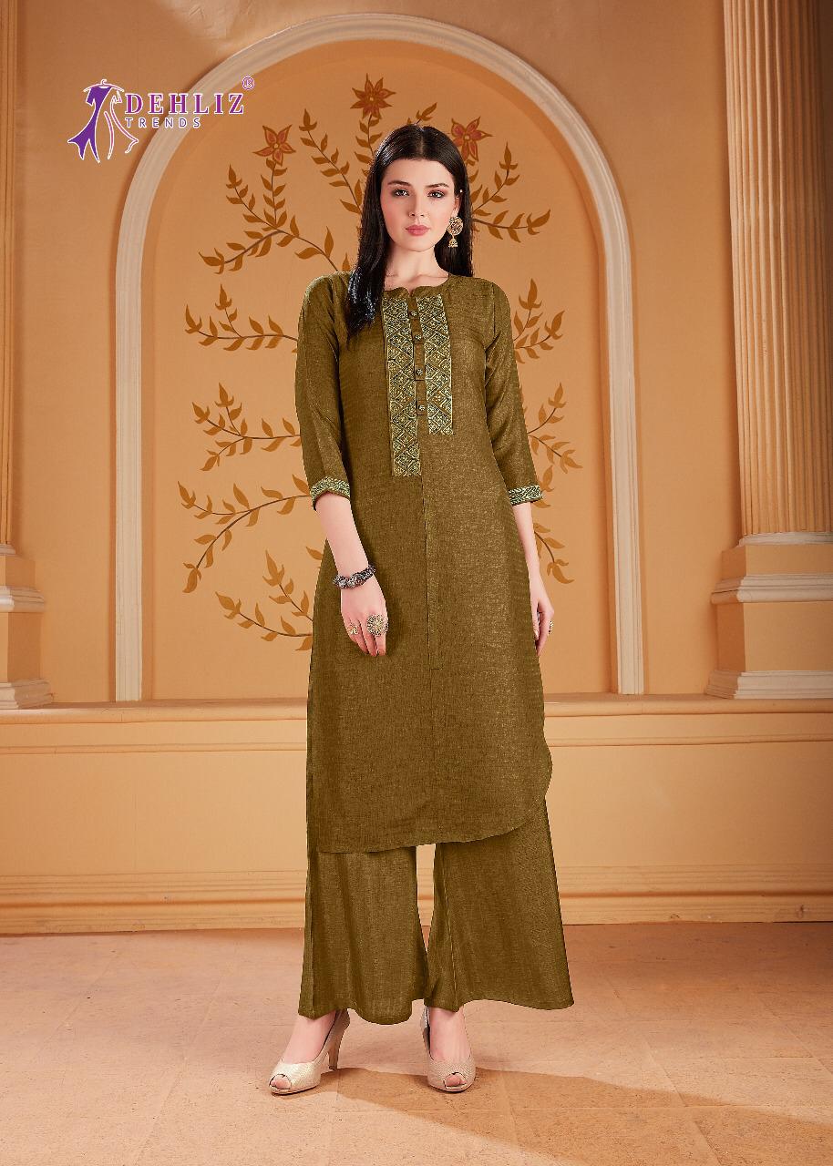 Buy Online Plazzo House By Dehliz Matka Silk Kurtis With Plazzo Wholesale Supplier And Dealer Gujarat 6 Pcs of Full Catalogue at Wholesale Price. Looking for Plazzo House By Dehliz Matka Silk Kurtis With Plazzo Wholesale Supplier And Dealer Gujarat Full Catalouge at Best Price? Buy Now Plazzo House By Dehliz Matka Silk Kurtis With Plazzo Wholesale Supplier And Dealer Gujarat at Wholesale Rate of Rs 4350 with Total 6 Pcs from authroized dealer and supplier of Brand. Cost of Each piece is just only Rs 725 which is very low and affordable price to resale the product in your retail store ,This is Surat based Wholesale Supplier & Dealer of Brand. Click on Brand name to Know more about Brand's products.Call or Whatsapp on 9898838984 for booking or enquiry
