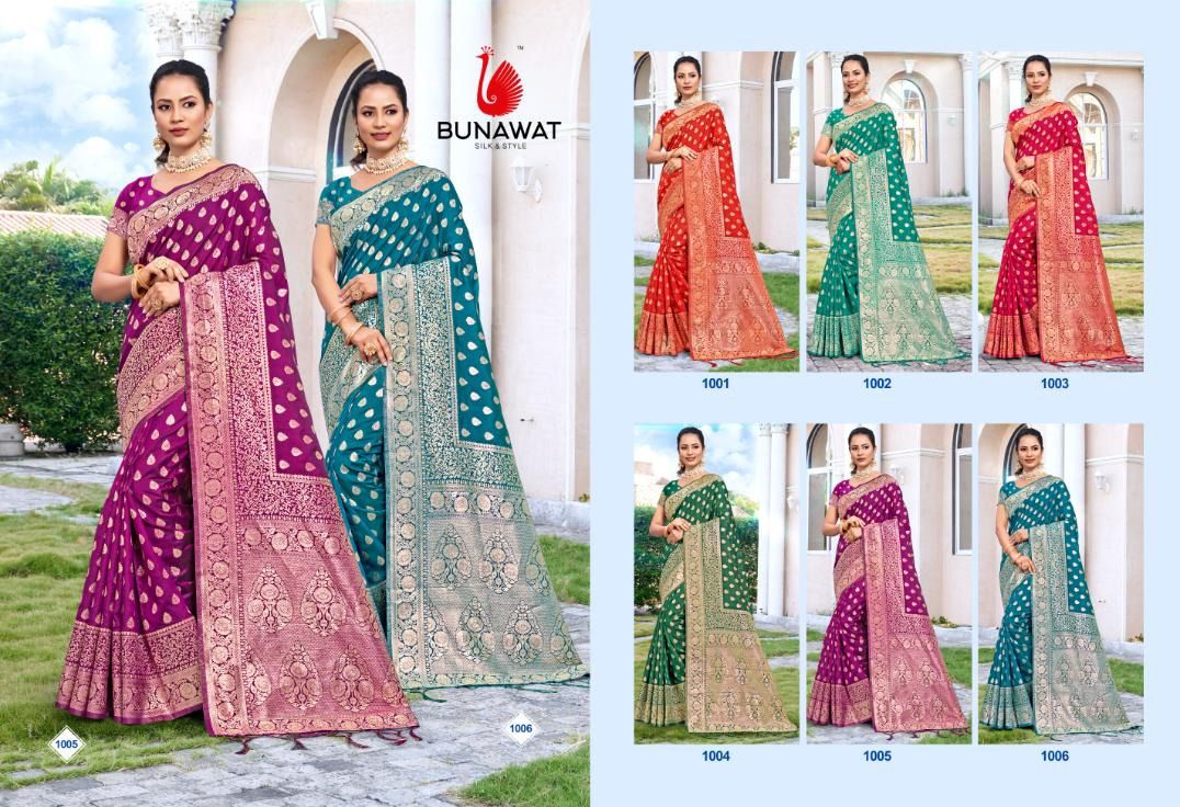 ? New Catalog Exclusively Launching From Our Newly Launched Brand:- BUNAWAT ? Catalog Name: Plazzo Silk Vol-04 Brand: BUNAWAT Product Type: Saree Fabric: Silk Price Per Piece: 899/- Gst Extra: 5% Other Specifications: Silk Saree Saree Mtr: 5.5 Mtr Blouse: 0.8 Mtr Total Pcs: 6 Book your orders now 100+ SINGLE |