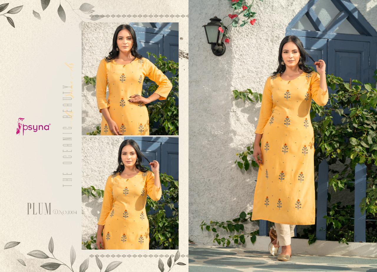 Buy Online Plum By Psyna Dealer And Exporter Surat Gujarat 6 Pcs of Full Catalogue at Wholesale Price. Looking for Plum By Psyna Dealer And Exporter Surat Gujarat Full Catalouge at Best Price? Buy Now Plum By Psyna Dealer And Exporter Surat Gujarat at Wholesale Rate of Rs 2850 with Total 6 Pcs from authroized dealer and supplier of PSYNA Brand. Cost of Each piece is just only Rs 475 which is very low and affordable price to resale the product in your retail store ,This is Surat based Wholesale Supplier & Dealer of PSYNA Brand. Click on Brand name to Know more about PSYNA Brand's products.Call or Whatsapp on 9898838984 for booking or enquiry