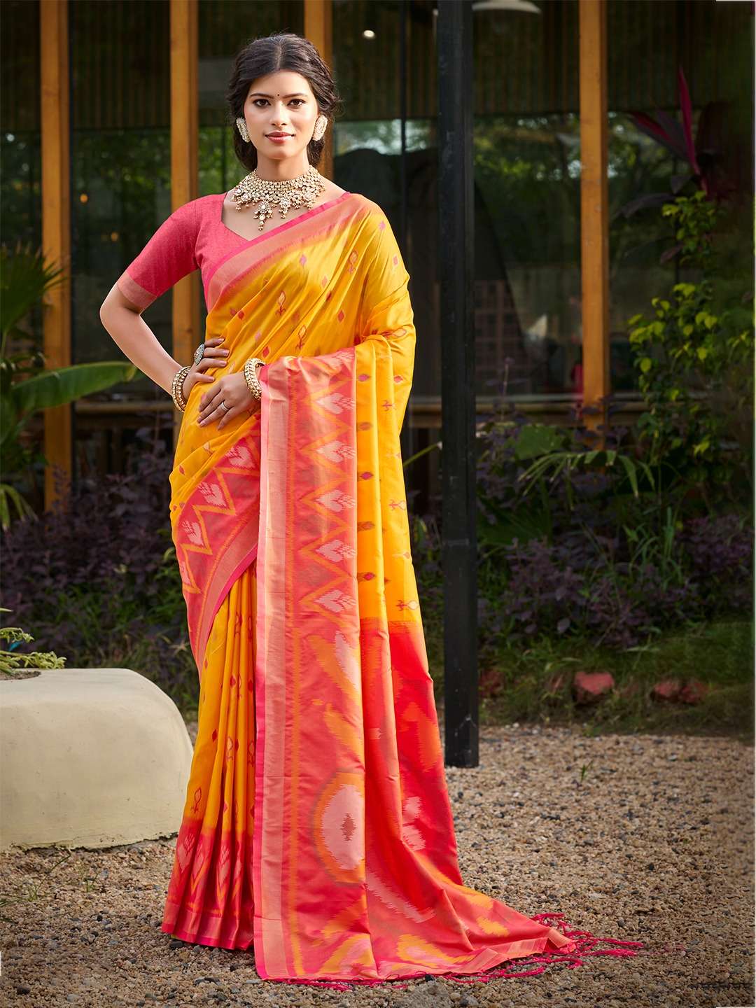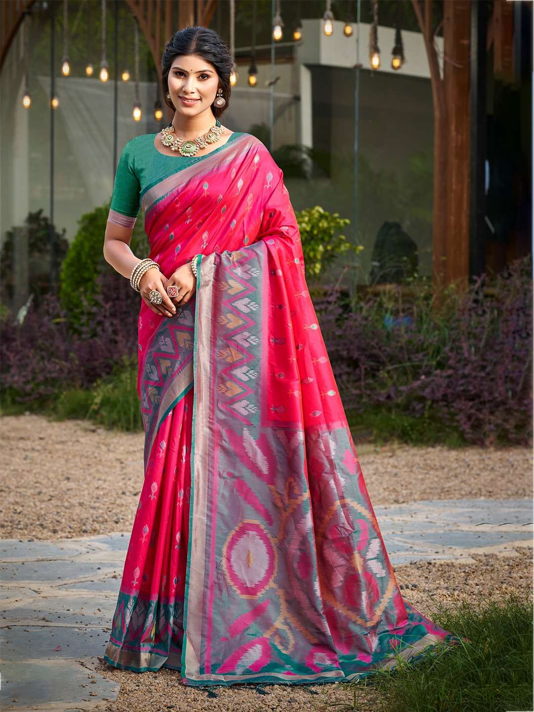 Brand - Bunawat Catalogue Name : Pochampalli-11 Saree Fabric : SILK Blouse Fabric : SILK Price : 1160 GST 5% Extra. Single available. Ready to ship. |