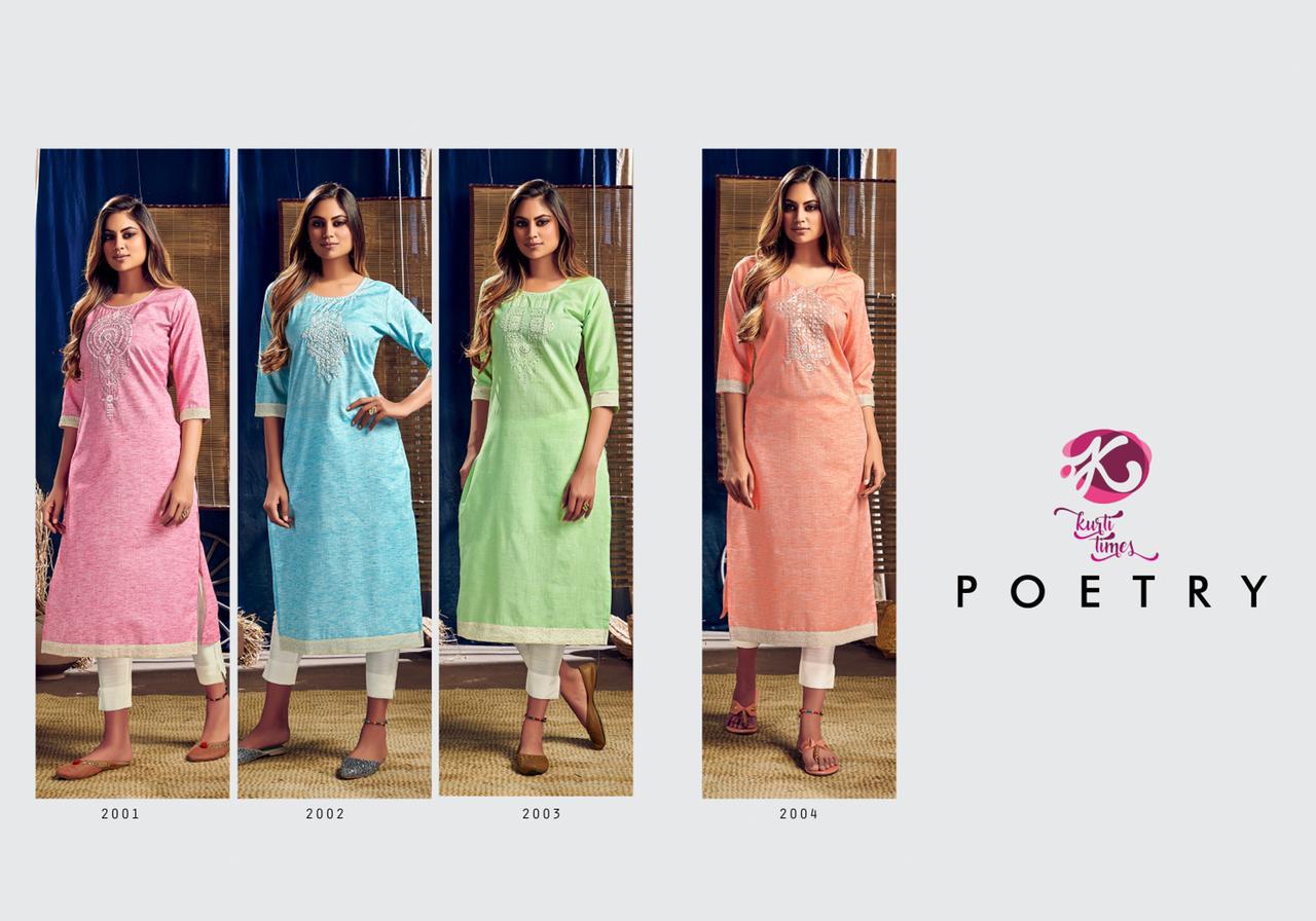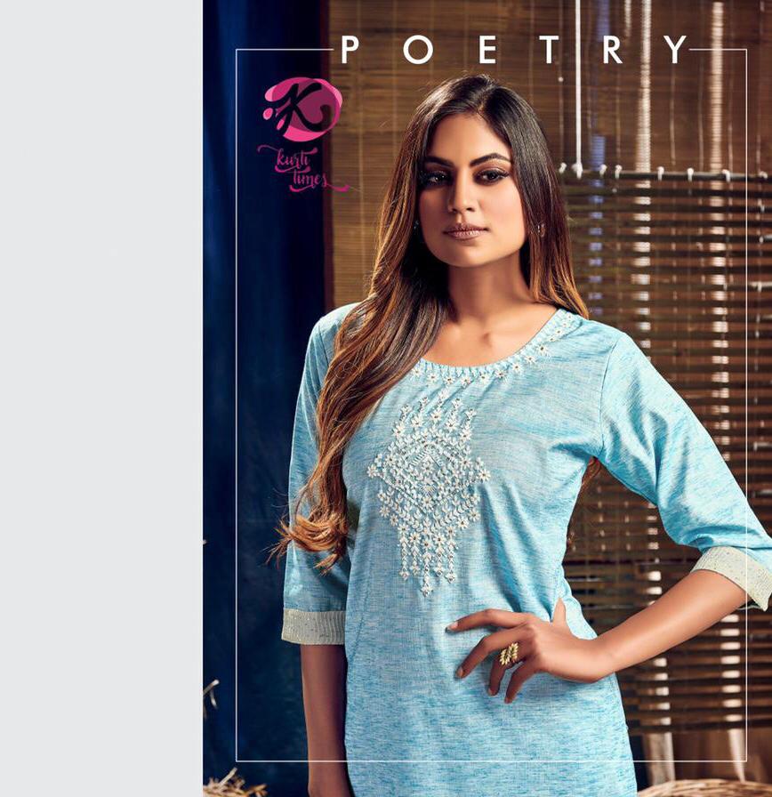 Buy Online Poetry By Kurti Times Manufacturer Traders Surat 4 Pcs of Full Catalogue at Wholesale Price. Looking for Poetry By Kurti Times Manufacturer Traders Surat Full Catalouge at Best Price? Buy Now Poetry By Kurti Times Manufacturer Traders Surat at Wholesale Rate of Rs 1680 with Total 4 Pcs from authroized dealer and supplier of Kurti times Brand. Cost of Each piece is just only Rs 420 which is very low and affordable price to resale the product in your retail store ,This is Surat based Wholesale Supplier & Dealer of Kurti times Brand. Click on Brand name to Know more about Kurti times Brand's products.Call or Whatsapp on 9898838984 for booking or enquiry