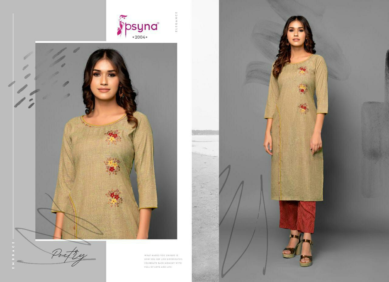 Buy Online Poetry Vol 2 By Psyna Manufacturer And Dealer From All Over India 8 Pcs of Full Catalogue at Wholesale Price. Looking for Poetry Vol 2 By Psyna Manufacturer And Dealer From All Over India Full Catalouge at Best Price? Buy Now Poetry Vol 2 By Psyna Manufacturer And Dealer From All Over India at Wholesale Rate of Rs 6000 with Total 8 Pcs from authroized dealer and supplier of PSYNA Brand. Cost of Each piece is just only Rs 750 which is very low and affordable price to resale the product in your retail store ,This is Surat based Wholesale Supplier & Dealer of PSYNA Brand. Click on Brand name to Know more about PSYNA Brand's products.Call or Whatsapp on 9898838984 for booking or enquiry