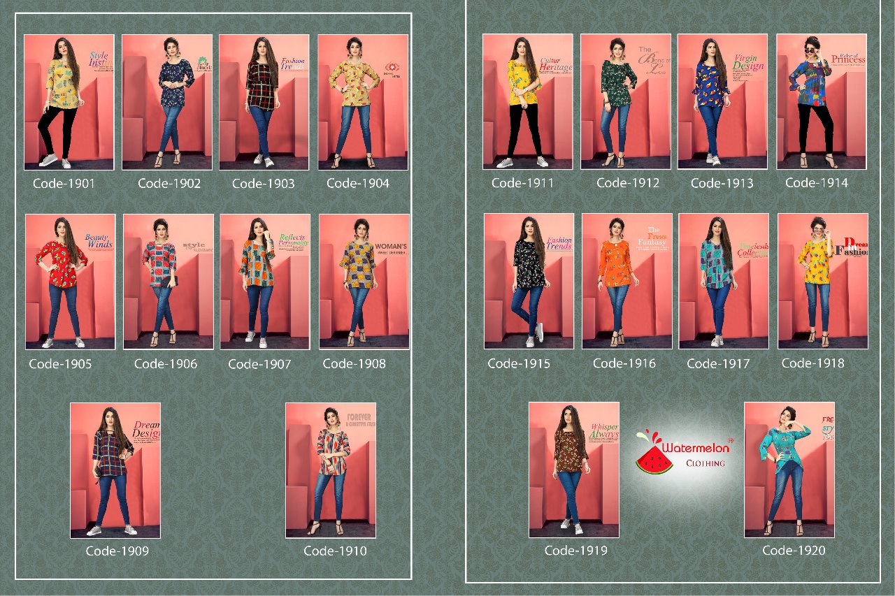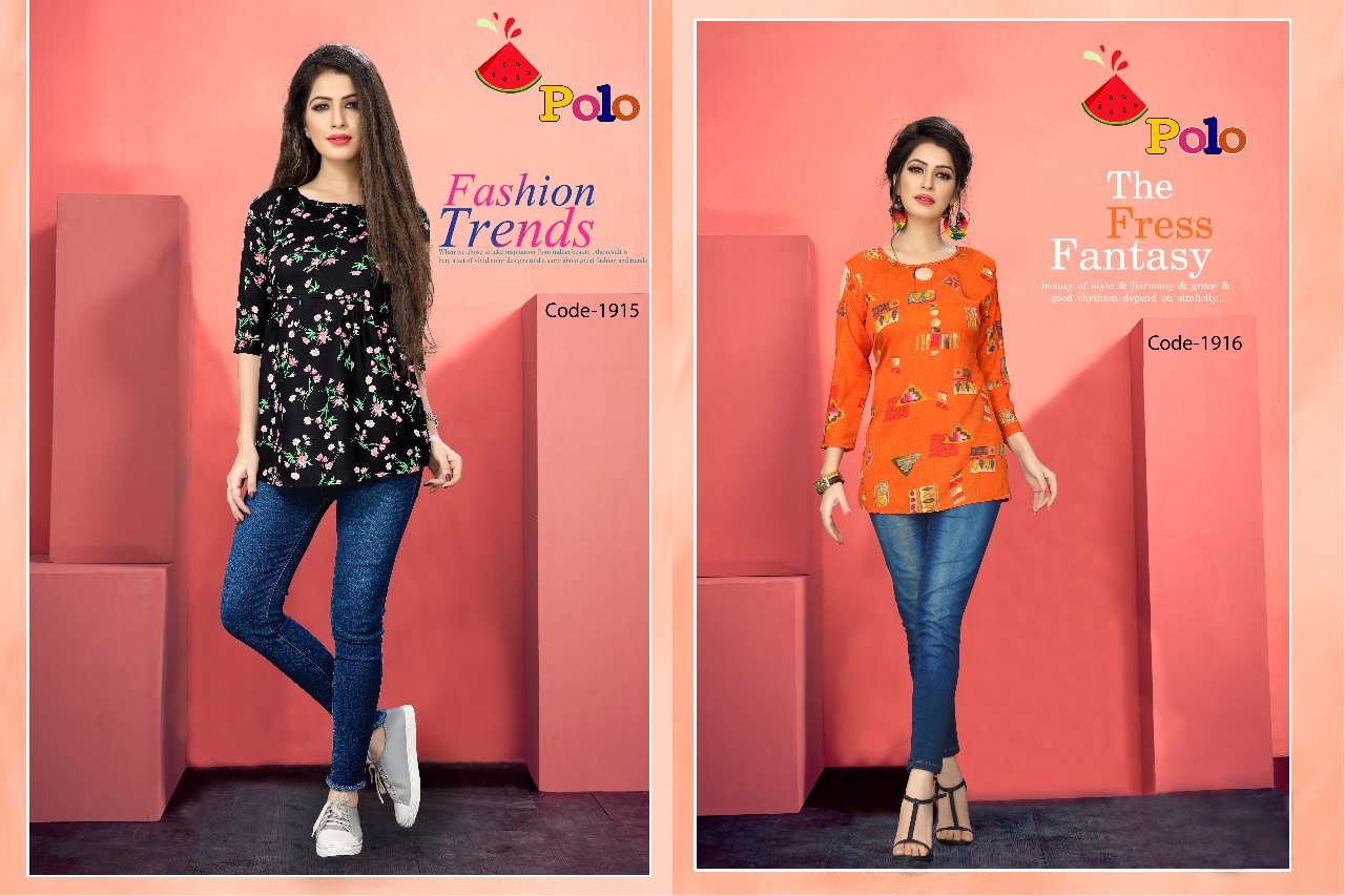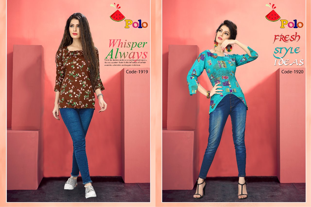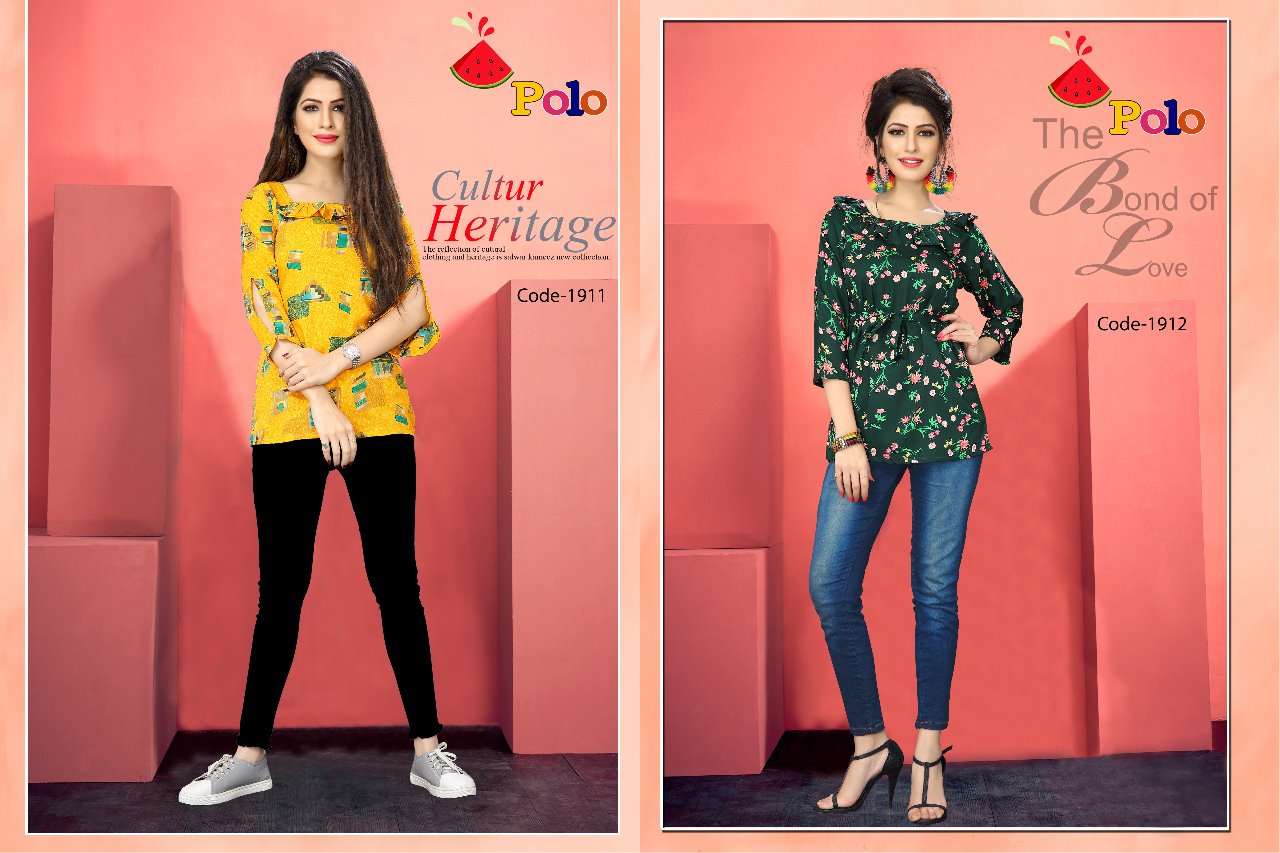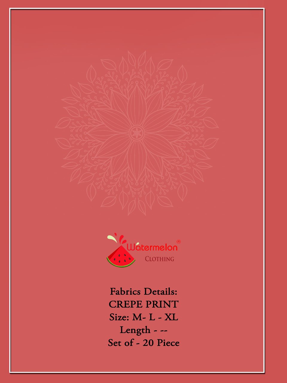 Buy Online Polo By Watermelon Crepe Printed Tops Wholesale Supplier And Dealer Surat 20 Pcs of Full Catalogue at Wholesale Price. Looking for Polo By Watermelon Crepe Printed Tops Wholesale Supplier And Dealer Surat Full Catalouge at Best Price? Buy Now Polo By Watermelon Crepe Printed Tops Wholesale Supplier And Dealer Surat at Wholesale Rate of Rs 4000 with Total 20 Pcs from authroized dealer and supplier of WATERMELON Brand. Cost of Each piece is just only Rs 200 which is very low and affordable price to resale the product in your retail store ,This is Surat based Wholesale Supplier & Dealer of WATERMELON Brand. Click on Brand name to Know more about WATERMELON Brand's products.Call or Whatsapp on 9898838984 for booking or enquiry
