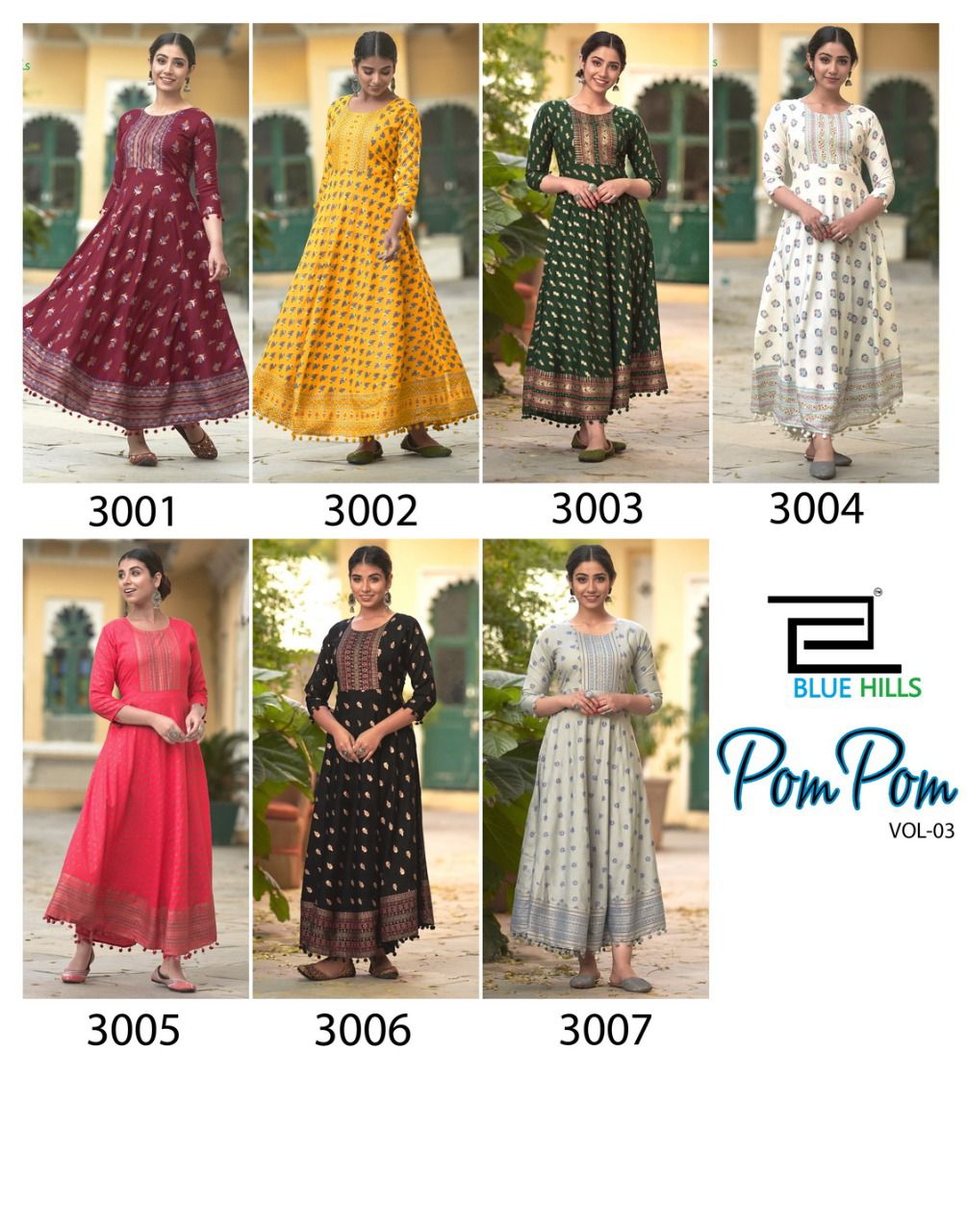 Buy Online Pom Pom Vol 3 By Blue Hills Dealer And Exporter Surat Gujarat 7 Pcs of Full Catalogue at Wholesale Price. Looking for Pom Pom Vol 3 By Blue Hills Dealer And Exporter Surat Gujarat Full Catalouge at Best Price? Buy Now Pom Pom Vol 3 By Blue Hills Dealer And Exporter Surat Gujarat at Wholesale Rate of Rs 3990 with Total 7 Pcs from authroized dealer and supplier of Blue hills Brand. Cost of Each piece is just only Rs 570 which is very low and affordable price to resale the product in your retail store ,This is Surat based Wholesale Supplier & Dealer of Blue hills Brand. Click on Brand name to Know more about Blue hills Brand's products.Call or Whatsapp on 9898838984 for booking or enquiry
