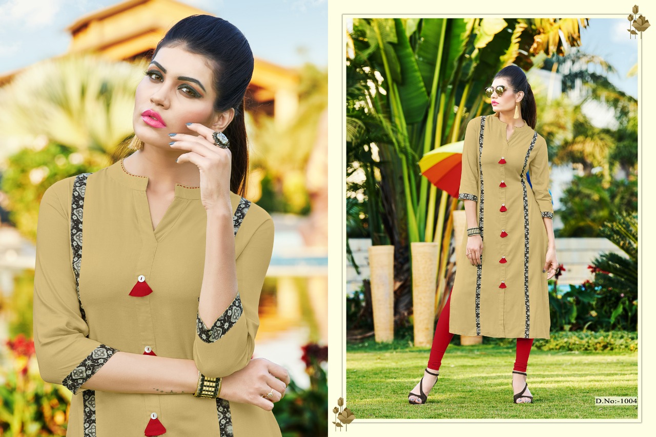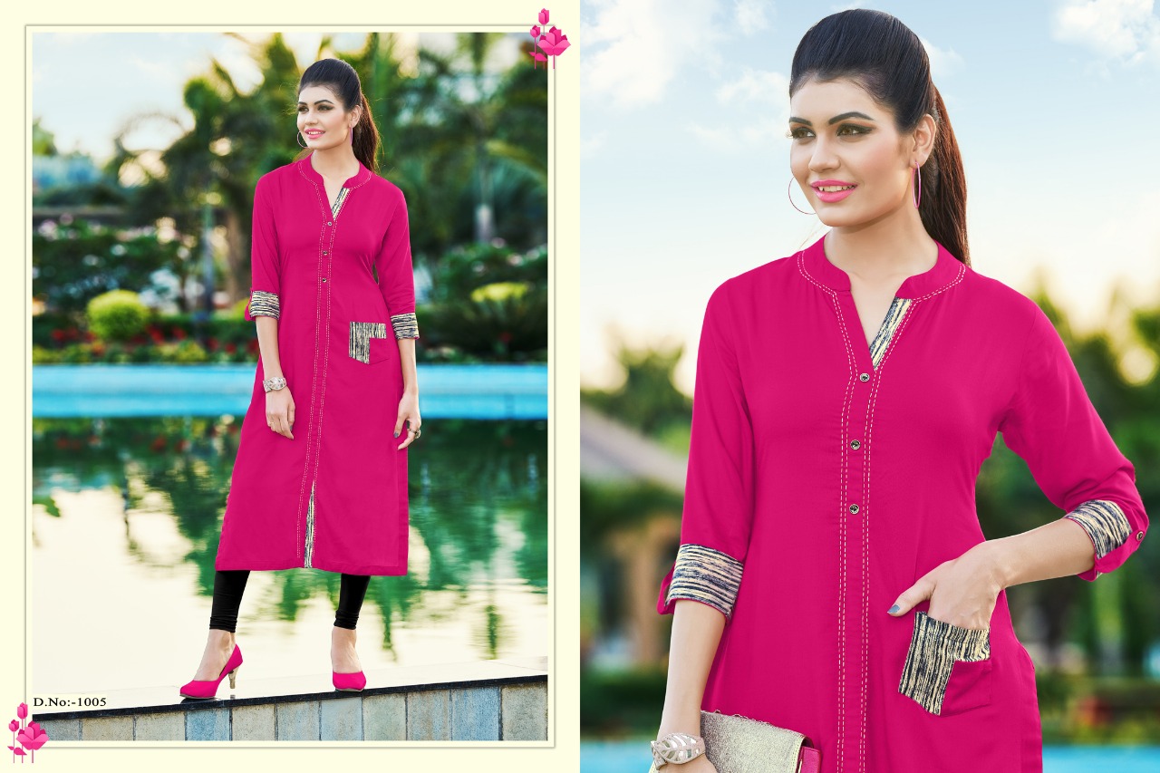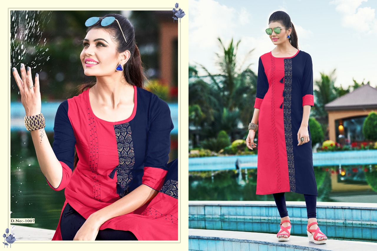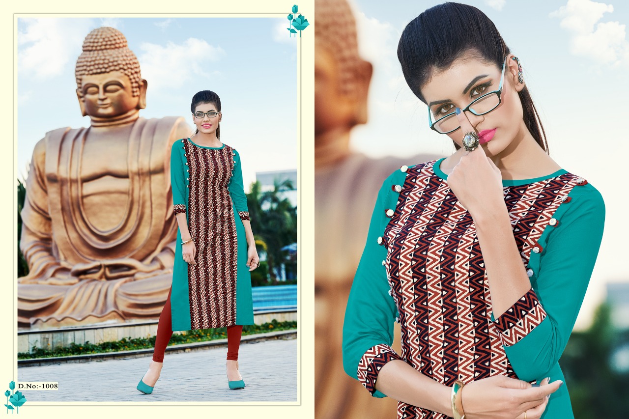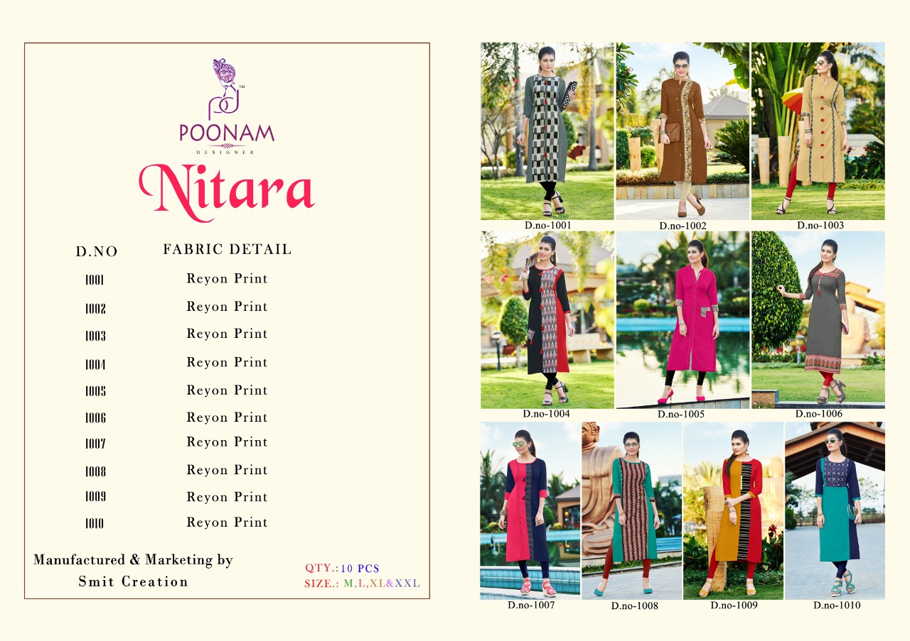 Poonam Designer Nitara 1001 Series Reyon Printed Kurti Dealr
