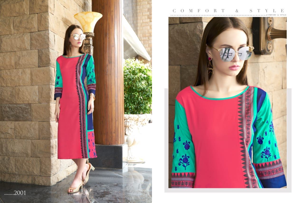 Poonam Nitara Vol 2 2001 Series Reyon Printed Kurti Catlog Wholesaler And Supplier Surat