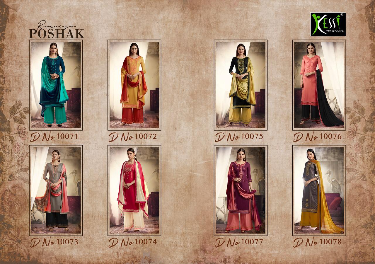 Buy Online Poshak By Kessi Ramaiya Jam Silk Dress Materials Wholesale Supplier Surat 8 Pcs of Full Catalogue at Wholesale Price. Looking for Poshak By Kessi Ramaiya Jam Silk Dress Materials Wholesale Supplier Surat Full Catalouge at Best Price? Buy Now Poshak By Kessi Ramaiya Jam Silk Dress Materials Wholesale Supplier Surat at Wholesale Rate of Rs 6392 with Total 8 Pcs from authroized dealer and supplier of KESSI Brand. Cost of Each piece is just only Rs 799 which is very low and affordable price to resale the product in your retail store ,This is Surat based Wholesale Supplier & Dealer of KESSI Brand. Click on Brand name to Know more about KESSI Brand's products.Call or Whatsapp on 9898838984 for booking or enquiry