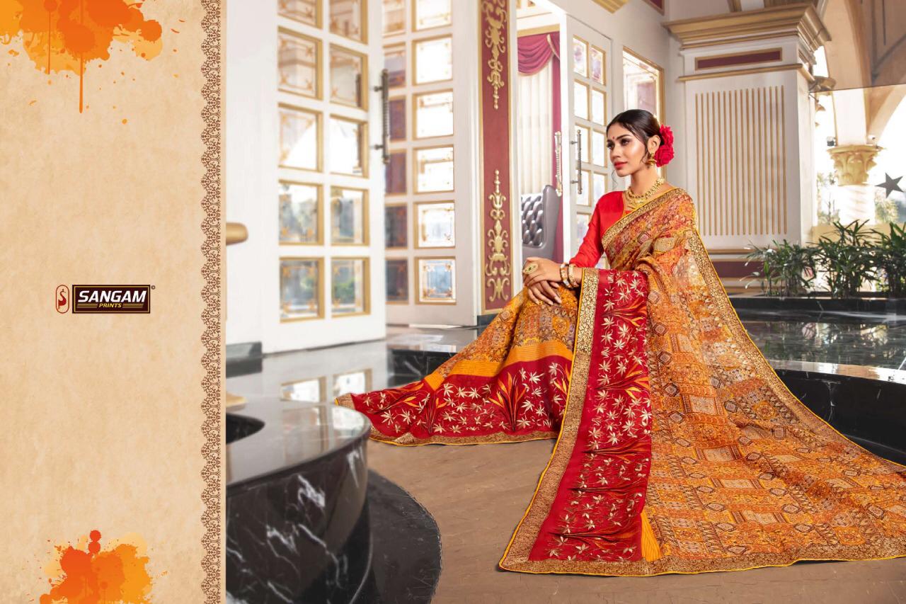 Buy Online Poshak By Sangam 1001 Series Fancy Party Wear Kota Silk Emb Saree Collection Wholesaler Surat 8 Pcs of Full Catalogue at Wholesale Price. Looking for Poshak By Sangam 1001 Series Fancy Party Wear Kota Silk Emb Saree Collection Wholesaler Surat Full Catalouge at Best Price? Buy Now Poshak By Sangam 1001 Series Fancy Party Wear Kota Silk Emb Saree Collection Wholesaler Surat at Wholesale Rate of Rs 6600 with Total 8 Pcs from authroized dealer and supplier of SANGAM Brand. Cost of Each piece is just only Rs 825 which is very low and affordable price to resale the product in your retail store ,This is Surat based Wholesale Supplier & Dealer of SANGAM Brand. Click on Brand name to Know more about SANGAM Brand's products.Call or Whatsapp on 9898838984 for booking or enquiry