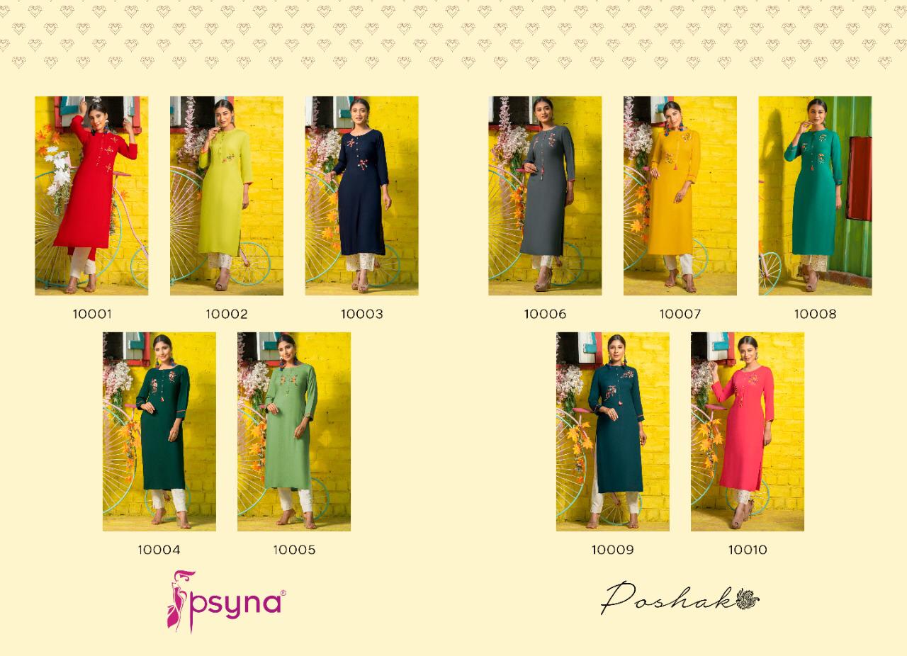 Buy Online Poshak Vol 10 By Psyna Manufacturer Traders Surat 10 Pcs of Full Catalogue at Wholesale Price. Looking for Poshak Vol 10 By Psyna Manufacturer Traders Surat Full Catalouge at Best Price? Buy Now Poshak Vol 10 By Psyna Manufacturer Traders Surat at Wholesale Rate of Rs 4750 with Total 10 Pcs from authroized dealer and supplier of PSYNA Brand. Cost of Each piece is just only Rs 475 which is very low and affordable price to resale the product in your retail store ,This is Surat based Wholesale Supplier & Dealer of PSYNA Brand. Click on Brand name to Know more about PSYNA Brand's products.Call or Whatsapp on 9898838984 for booking or enquiry