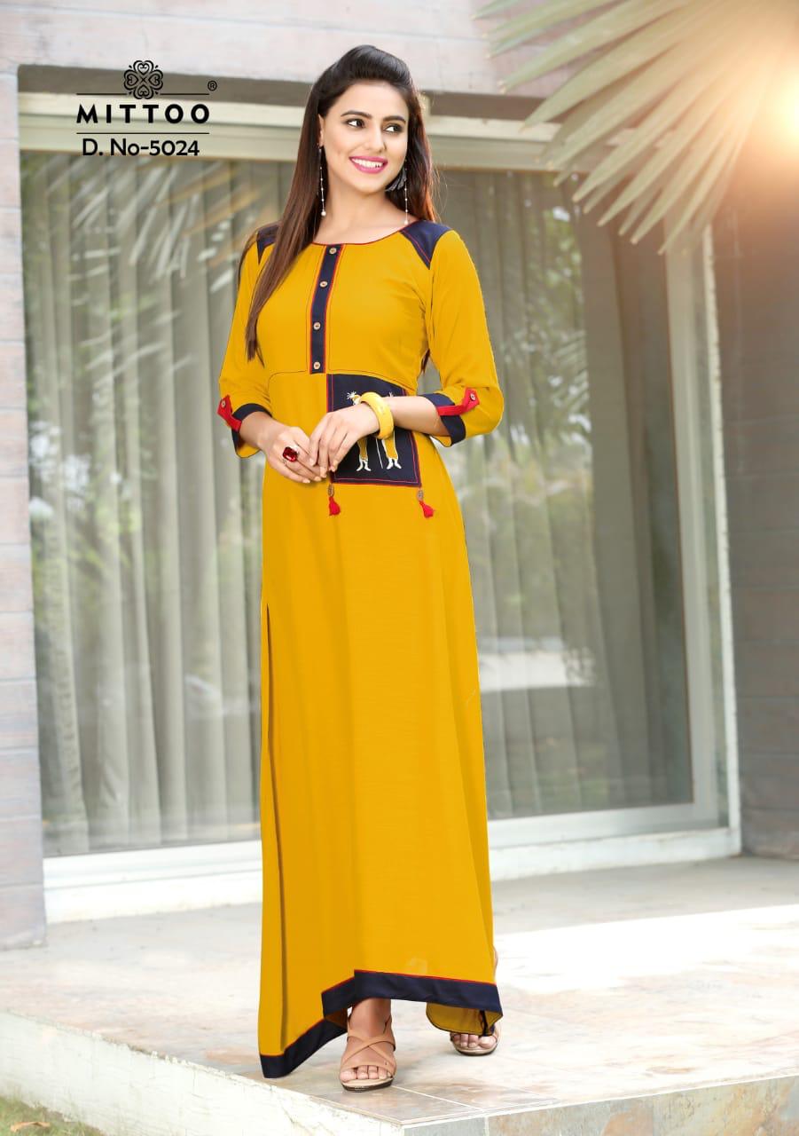 Buy Online Prachi Vol 4 By Mittoo 5021 Series Designer Reyon Slub Kurti Catlog Wholesale Dealer And Supplier Surat 8 Pcs of Full Catalogue at Wholesale Price. Looking for Prachi Vol 4 By Mittoo 5021 Series Designer Reyon Slub Kurti Catlog Wholesale Dealer And Supplier Surat Full Catalouge at Best Price? Buy Now Prachi Vol 4 By Mittoo 5021 Series Designer Reyon Slub Kurti Catlog Wholesale Dealer And Supplier Surat at Wholesale Rate of Rs 4160 with Total 8 Pcs from authroized dealer and supplier of MITTOO Brand. Cost of Each piece is just only Rs 520 which is very low and affordable price to resale the product in your retail store ,This is Surat based Wholesale Supplier & Dealer of MITTOO Brand. Click on Brand name to Know more about MITTOO Brand's products.Call or Whatsapp on 9898838984 for booking or enquiry