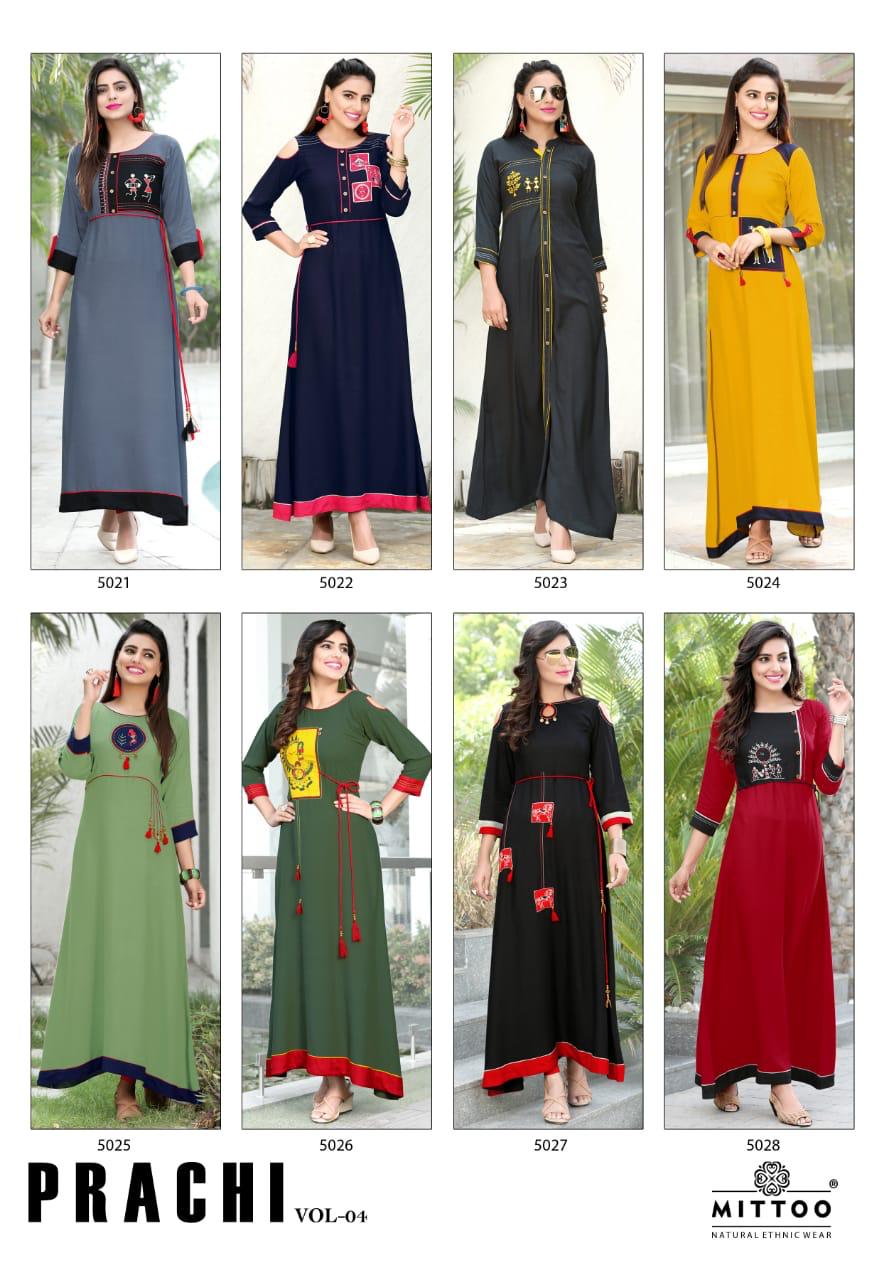 Prachi Vol 4 By Mittoo 5021 Series Designer Reyon Slub Kurti Catlog Wholesale Dealer And Supplier Surat