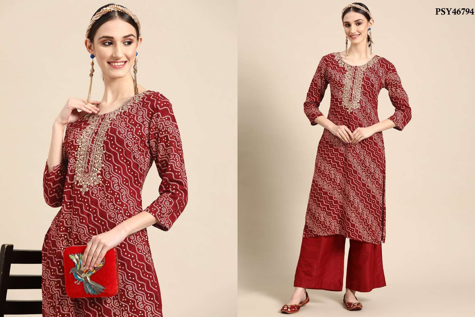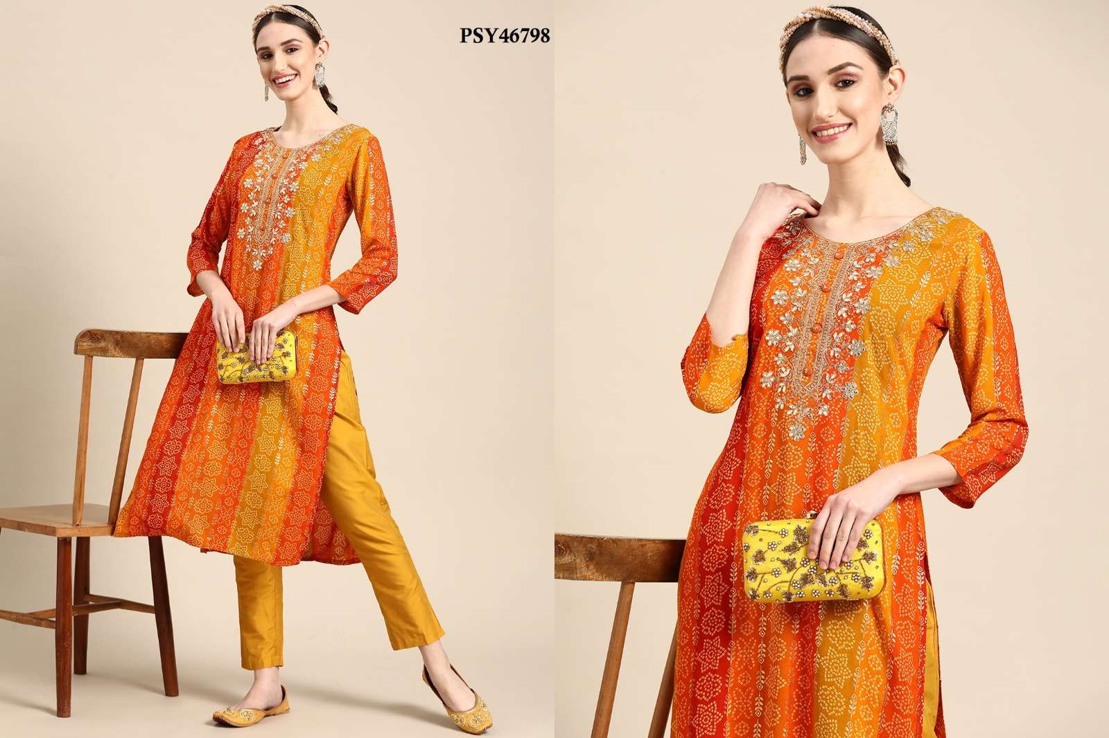 Buy Online Prasuti Bandhani print kurti collection manufacturer surat 6 Pcs of Full Catalogue at Wholesale Price. Looking for Prasuti Bandhani print kurti collection manufacturer surat Full Catalouge at Best Price? Buy Now Prasuti Bandhani print kurti collection manufacturer surat at Wholesale Rate of Rs 3390 with Total 6 Pcs from authroized dealer and supplier of BRAND'S Brand. Cost of Each piece is just only Rs 565 which is very low and affordable price to resale the product in your retail store ,This is Surat based Wholesale Supplier & Dealer of BRAND'S Brand. Click on Brand name to Know more about BRAND'S Brand's products.Call or Whatsapp on 9898838984 for booking or enquiry
