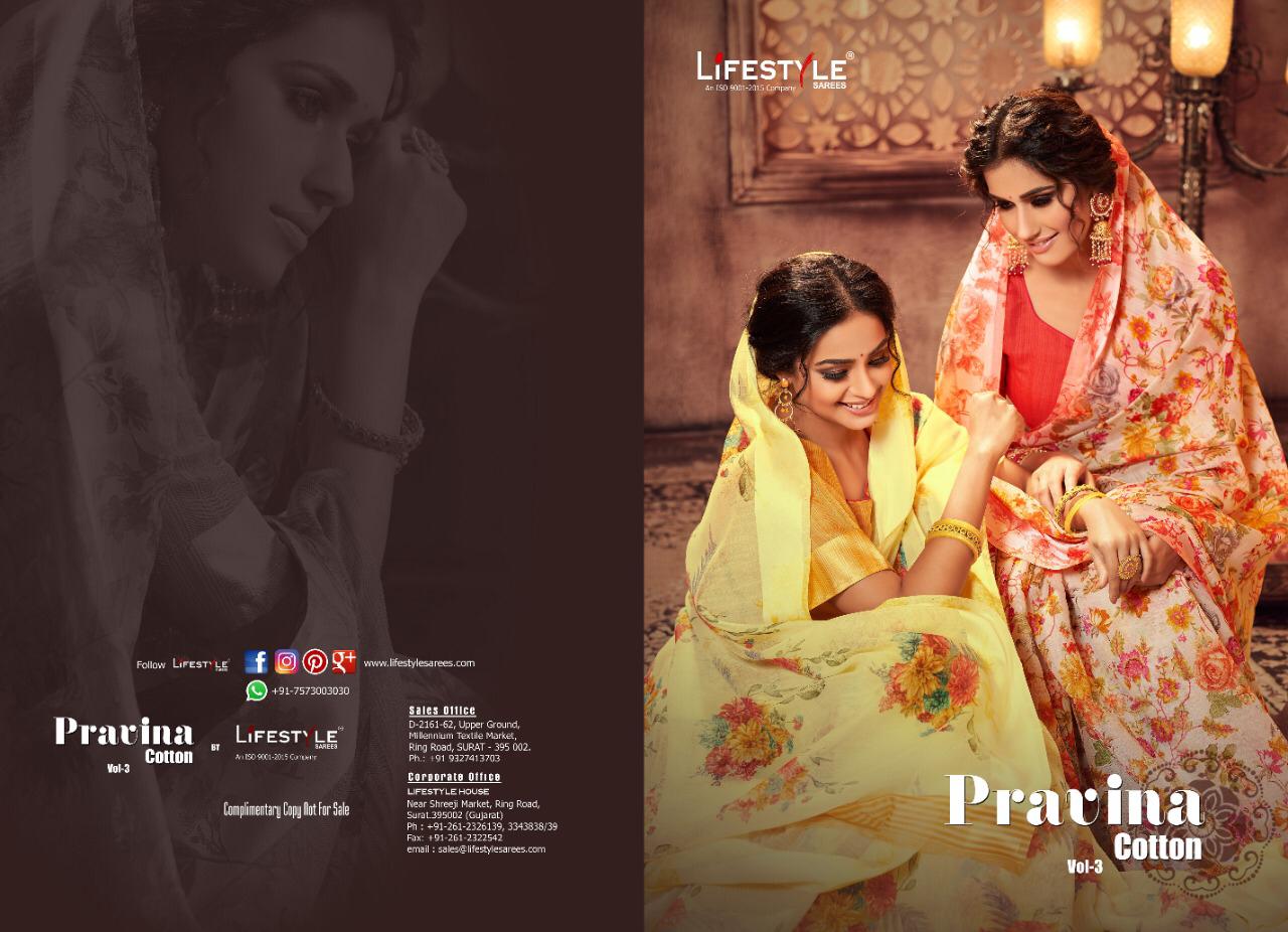 Buy Online Pravina Cotton Vol 3 By Lifestyle Linen Cotton Sarees Wholesale Supplier Gujarat 12 Pcs of Full Catalogue at Wholesale Price. Looking for Pravina Cotton Vol 3 By Lifestyle Linen Cotton Sarees Wholesale Supplier Gujarat Full Catalouge at Best Price? Buy Now Pravina Cotton Vol 3 By Lifestyle Linen Cotton Sarees Wholesale Supplier Gujarat at Wholesale Rate of Rs 6048 with Total 12 Pcs from authroized dealer and supplier of LIFESTYLE Brand. Cost of Each piece is just only Rs 504 which is very low and affordable price to resale the product in your retail store ,This is Surat based Wholesale Supplier & Dealer of LIFESTYLE Brand. Click on Brand name to Know more about LIFESTYLE Brand's products.Call or Whatsapp on 9898838984 for booking or enquiry