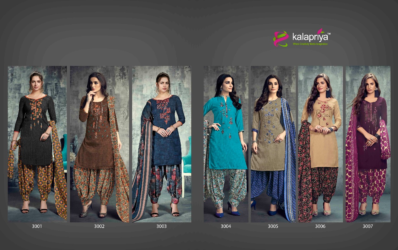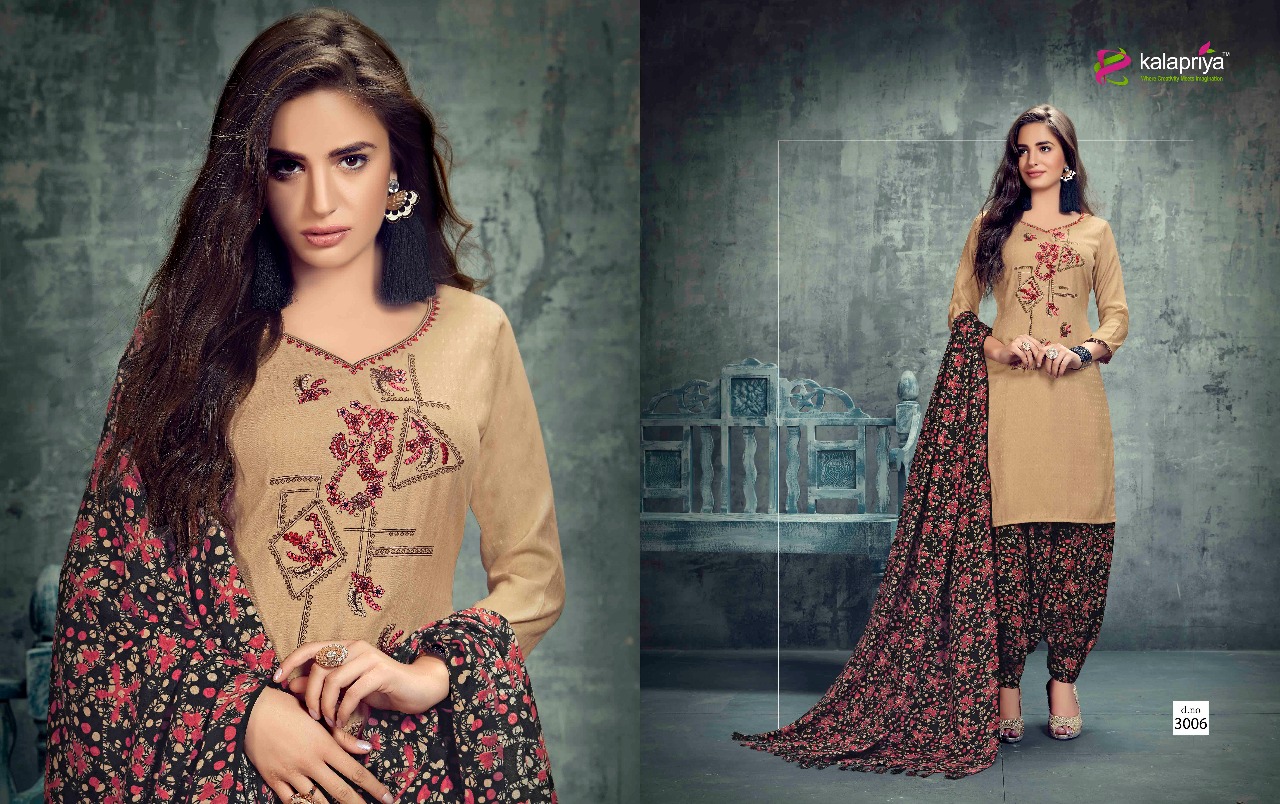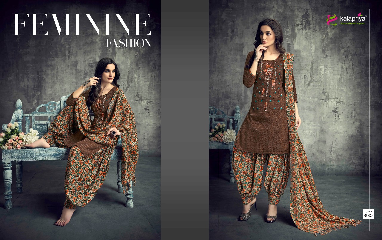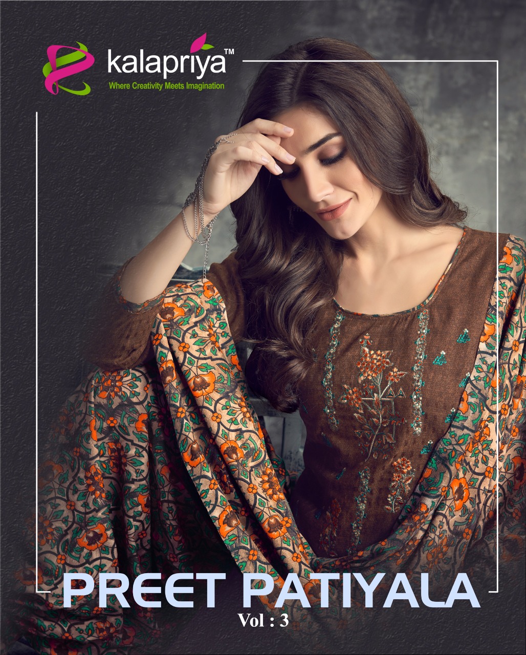 Preet Patiyala Vol 3 By Kalapriya 3001 Series Fancy Pure Pashmina Patiala Suut Catlog Wholesale Dealer Surat
