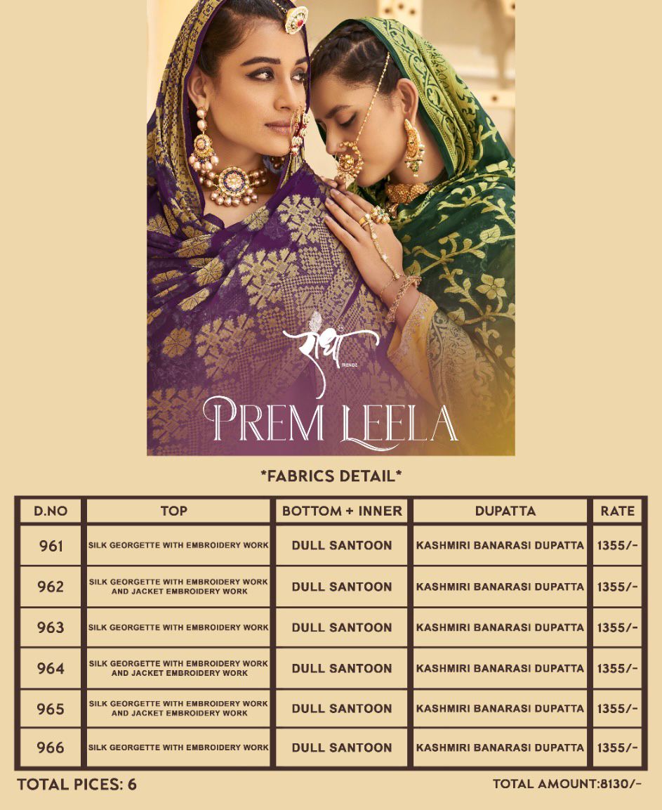 Buy Online Prem Leela By Radha Trendz Designer Georgette Suit Wholesale Supplier Traders In Surat 6 Pcs of Full Catalogue at Wholesale Price. Looking for Prem Leela By Radha Trendz Designer Georgette Suit Wholesale Supplier Traders In Surat Full Catalouge at Best Price? Buy Now Prem Leela By Radha Trendz Designer Georgette Suit Wholesale Supplier Traders In Surat at Wholesale Rate of Rs 8130 with Total 6 Pcs from authroized dealer and supplier of Brand. Cost of Each piece is just only Rs 1355 which is very low and affordable price to resale the product in your retail store ,This is Surat based Wholesale Supplier & Dealer of Brand. Click on Brand name to Know more about Brand's products.Call or Whatsapp on 9898838984 for booking or enquiry