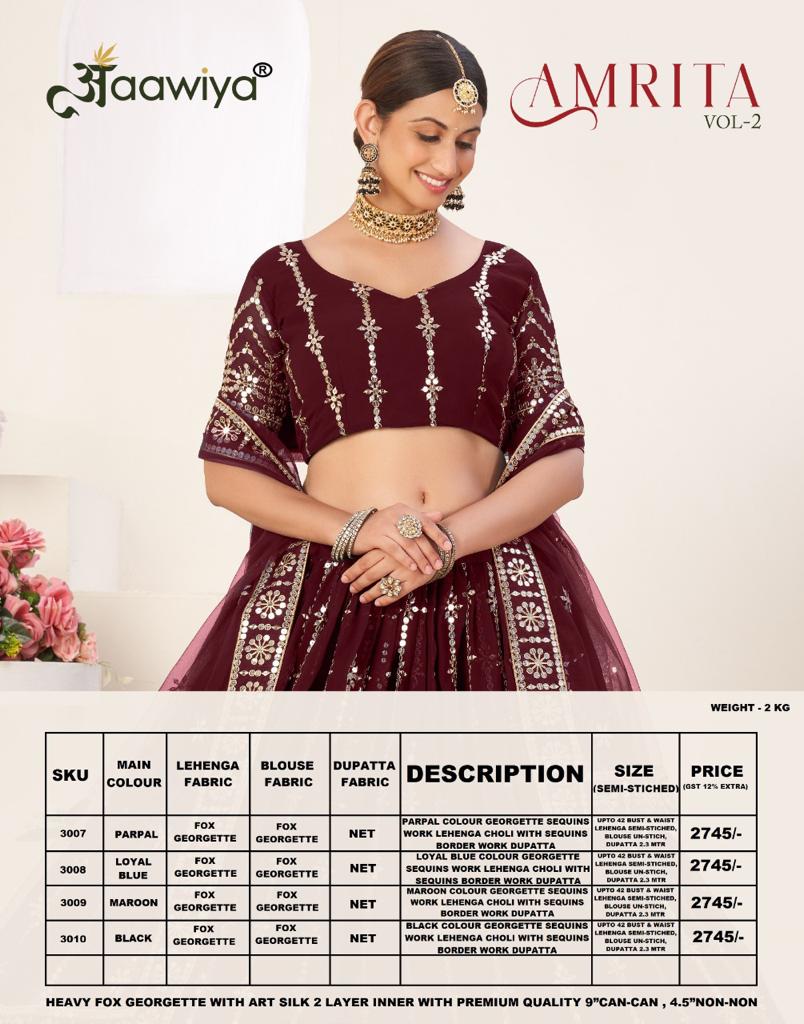 Buy Online Premium Collection This Wedding Season Amrita Vol 2 By Aawiya Lehanga Choli Set 4 Pcs of Full Catalogue at Wholesale Price. Looking for Premium Collection This Wedding Season Amrita Vol 2 By Aawiya Lehanga Choli Set Full Catalouge at Best Price? Buy Now Premium Collection This Wedding Season Amrita Vol 2 By Aawiya Lehanga Choli Set at Wholesale Rate of Rs 10980 with Total 4 Pcs from authroized dealer and supplier of Brand. Cost of Each piece is just only Rs 2745 which is very low and affordable price to resale the product in your retail store ,This is Surat based Wholesale Supplier & Dealer of Brand. Click on Brand name to Know more about Brand's products.Call or Whatsapp on 9898838984 for booking or enquiry
