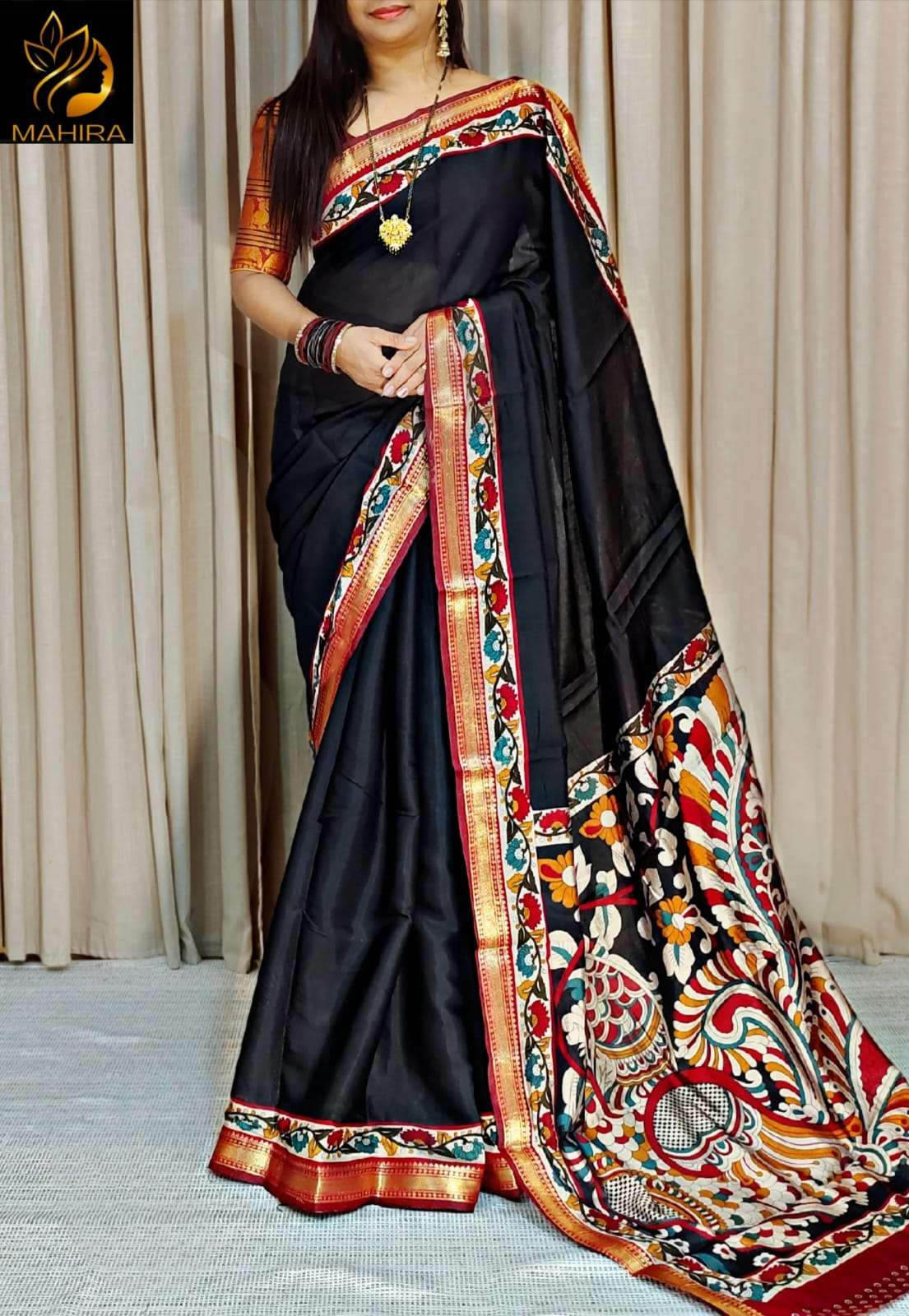 Fall in love with the comfort and elegance of our Premium Quality Mushru Mangalagiri Silk Sarees. Exceptionally soft, skin-friendly, and body-hugging, these sarees offer a graceful drape that feels as good as it looks. Designed with contrast Pochampally design zari weaving borders, they add a rich traditional touch. Comes with a blouse piece as shown in the picture. ✨ Fabric: Premium Mushru Mangalagiri Silk 🦩 Premium quality assured |
