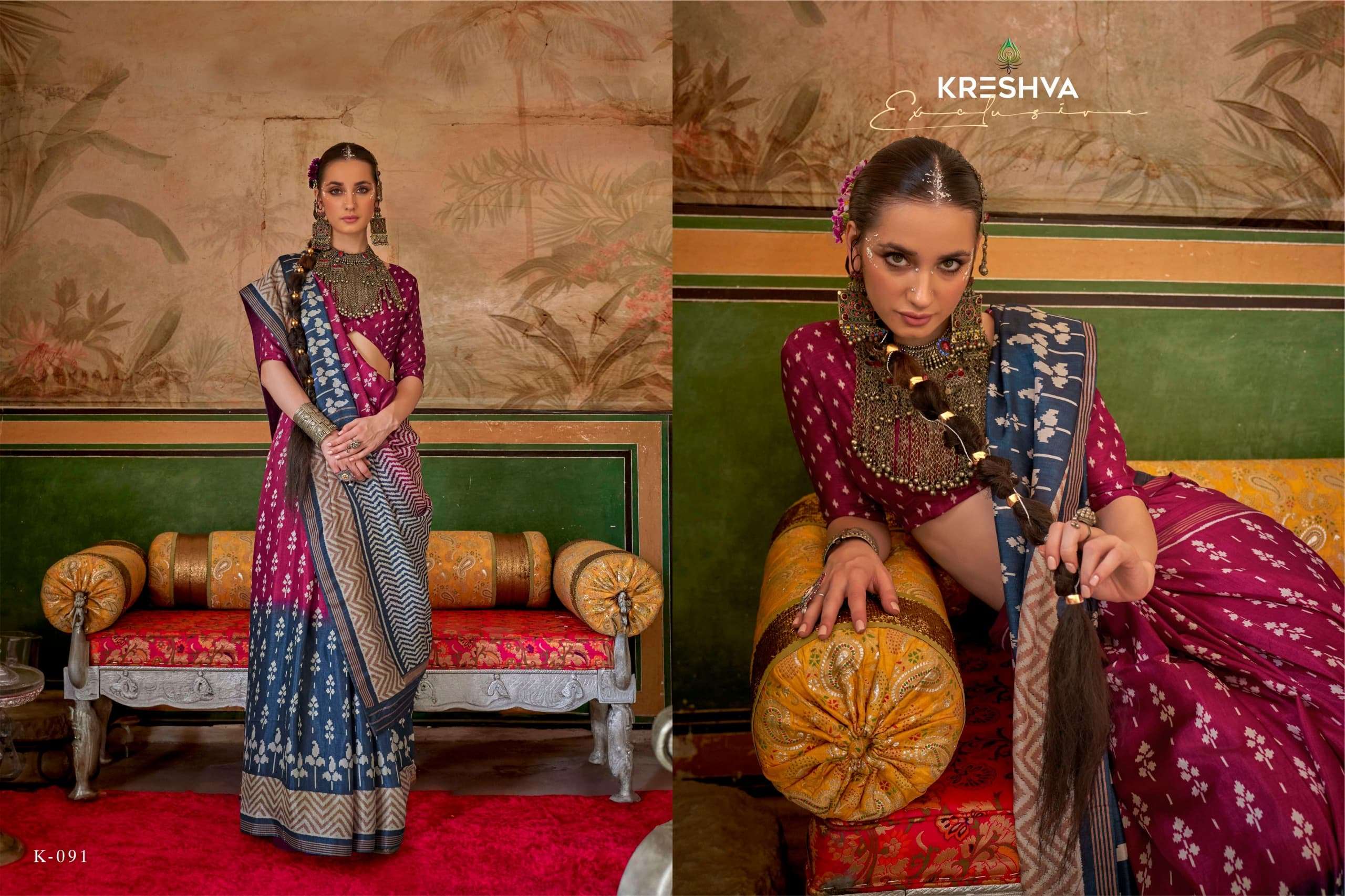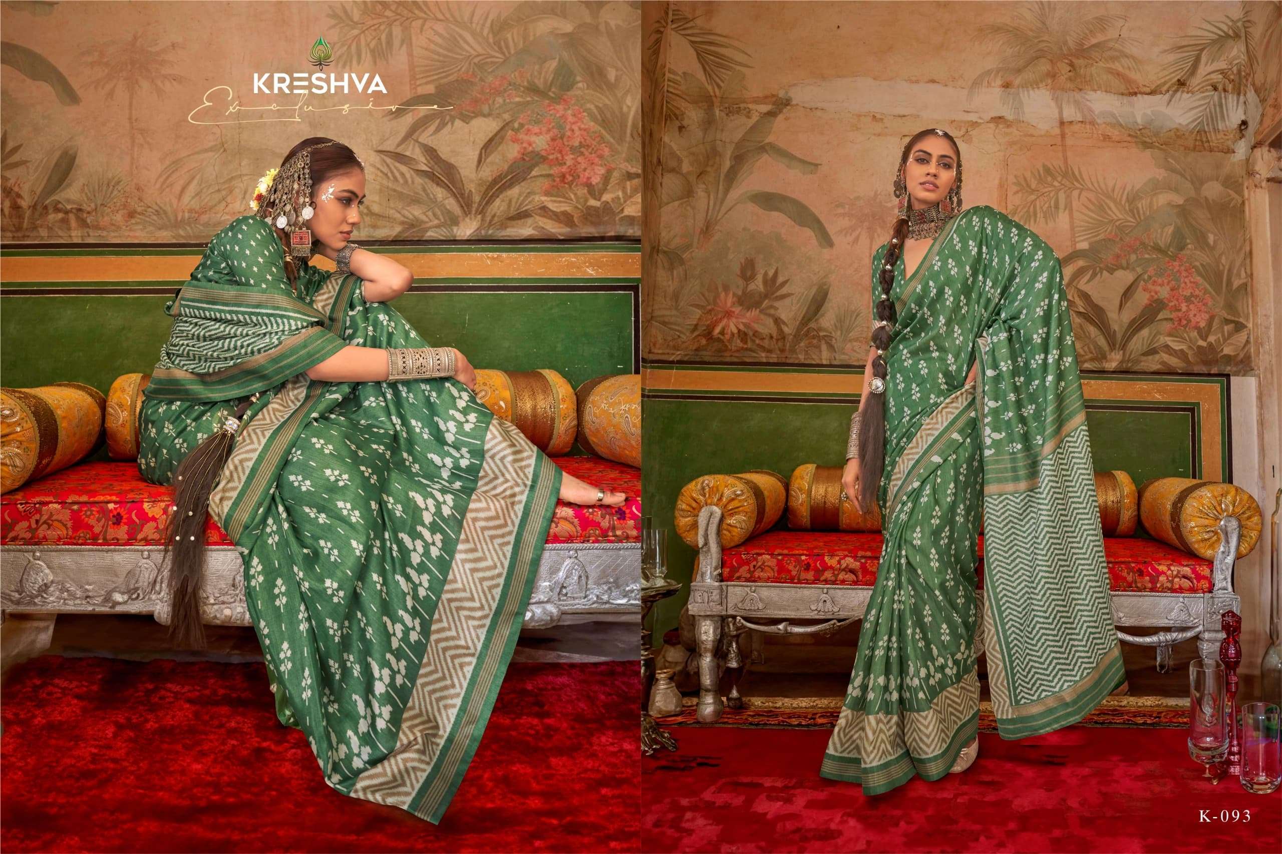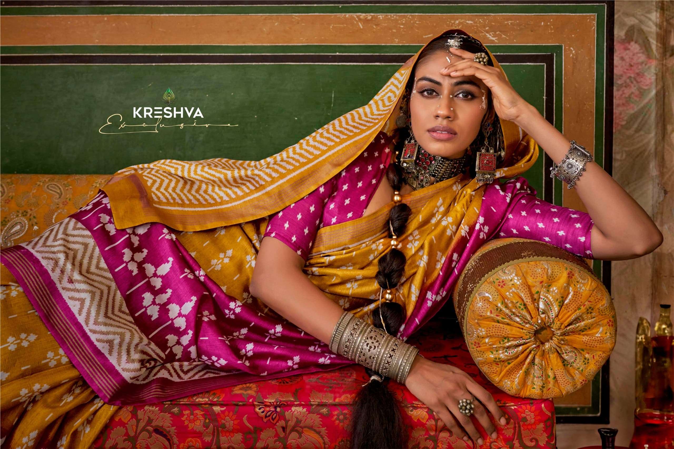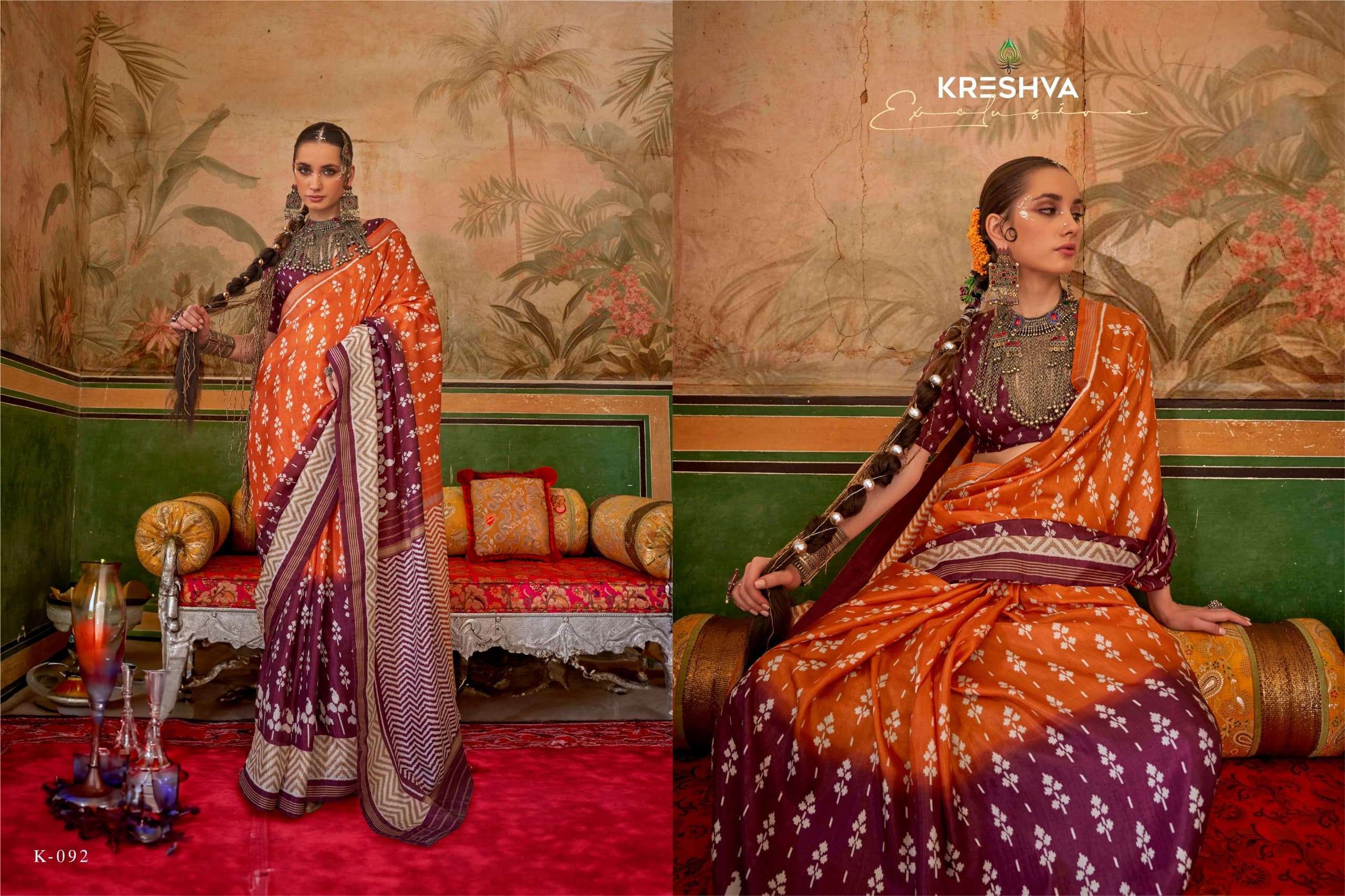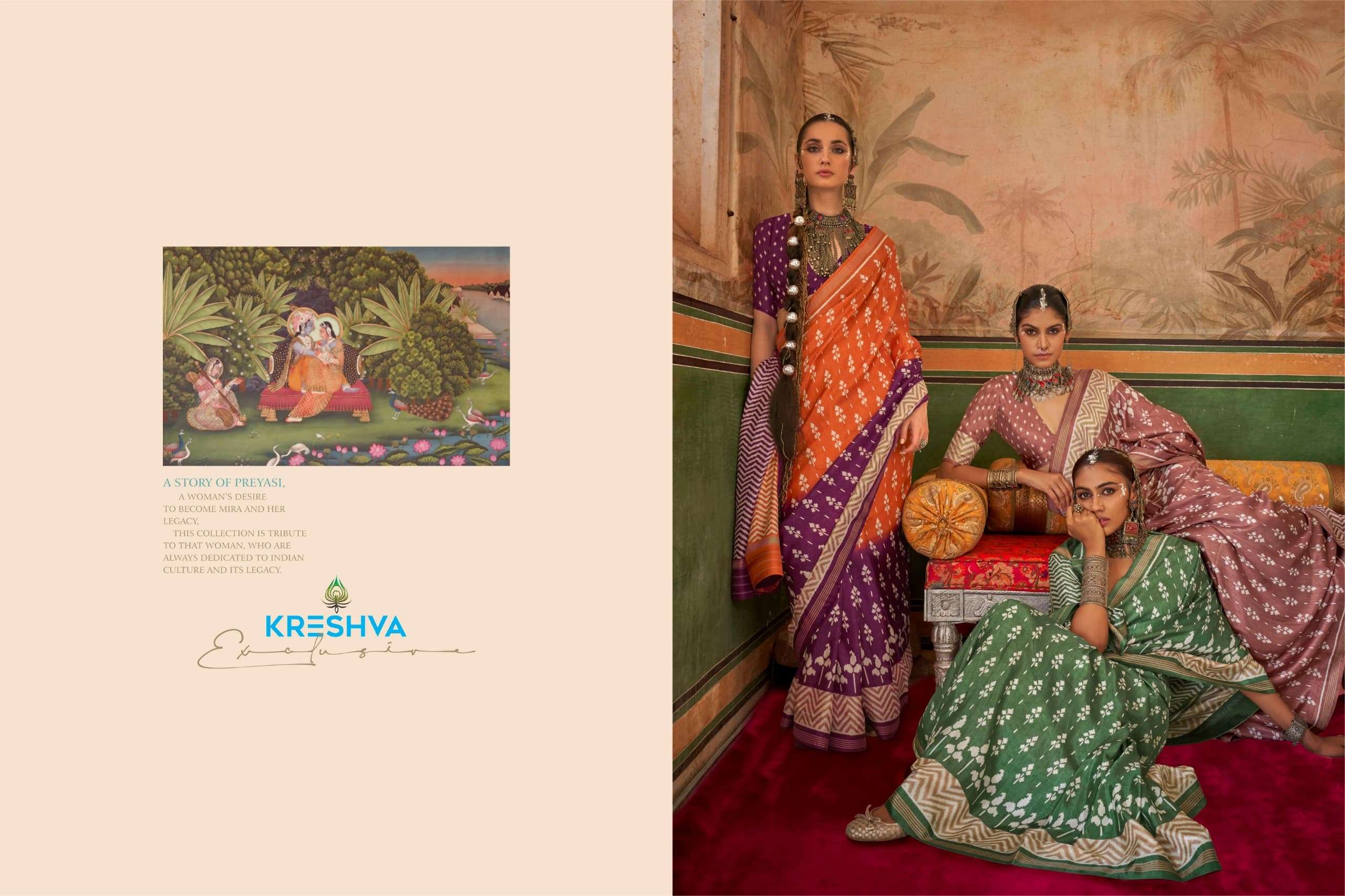Brand : Kreshva Catalog :Preyasi Price :- 695/- 5% Gst Extra SINGLE AVAILABLE Saree Fabric :-Mercerized Sigma Silk Traditional Classic Design With Aqua Finish Blouse Fabric :-Mercerized Sigma Silk Design No : K 086 to K-96 Ready To Dispatch |