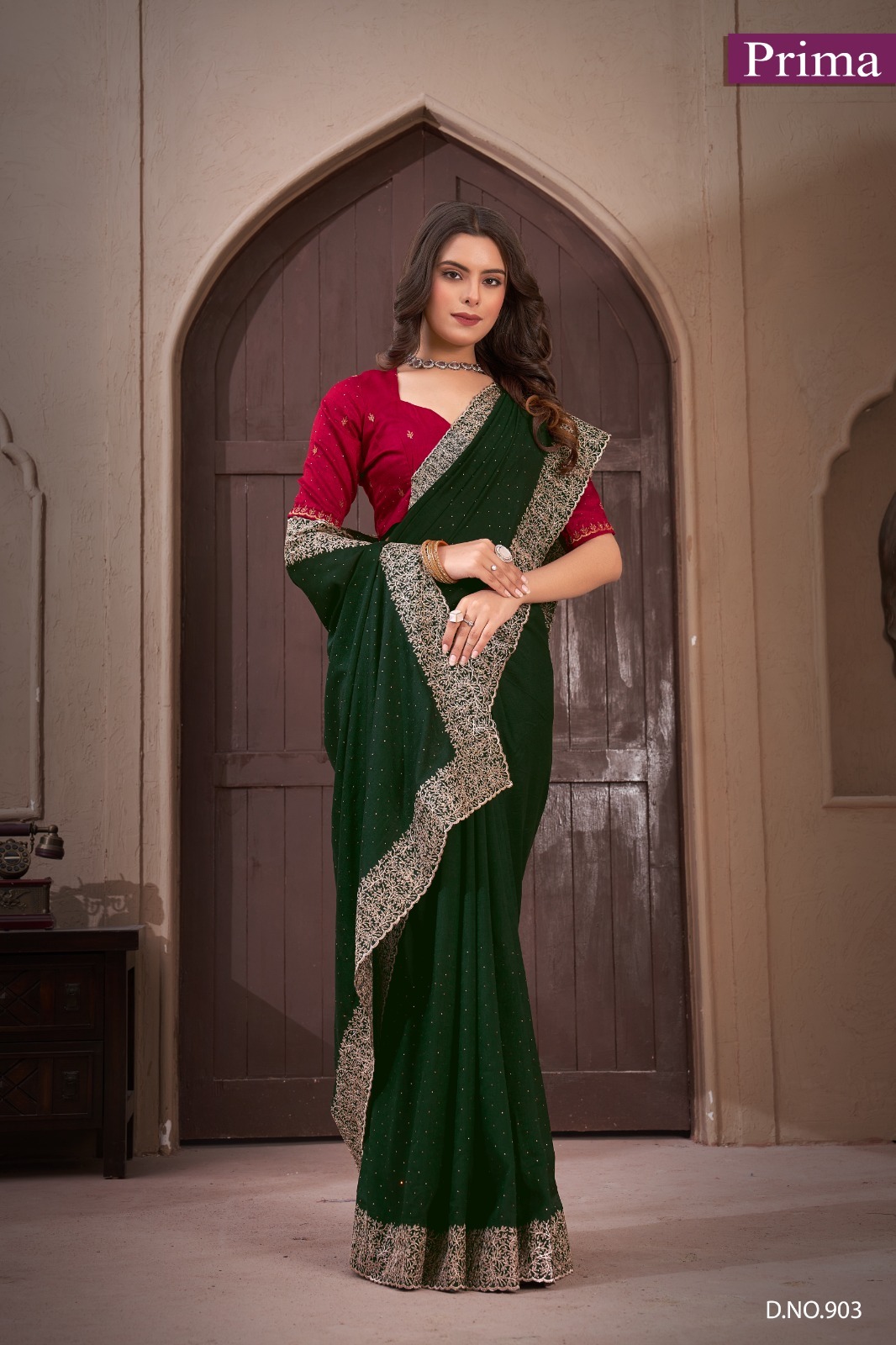 Buy Online Prima D No 901 To 908 Party Wear Sarees 8 Pcs of Full Catalogue at Wholesale Price. Looking for Prima D No 901 To 908 Party Wear Sarees Full Catalouge at Best Price? Buy Now Prima D No 901 To 908 Party Wear Sarees at Wholesale Rate of Rs 8080 with Total 8 Pcs from authroized dealer and supplier of BRAND'S Brand. Cost of Each piece is just only Rs 1010 which is very low and affordable price to resale the product in your retail store ,This is Surat based Wholesale Supplier & Dealer of BRAND'S Brand. Click on Brand name to Know more about BRAND'S Brand's products.Call or Whatsapp on 9898838984 for booking or enquiry