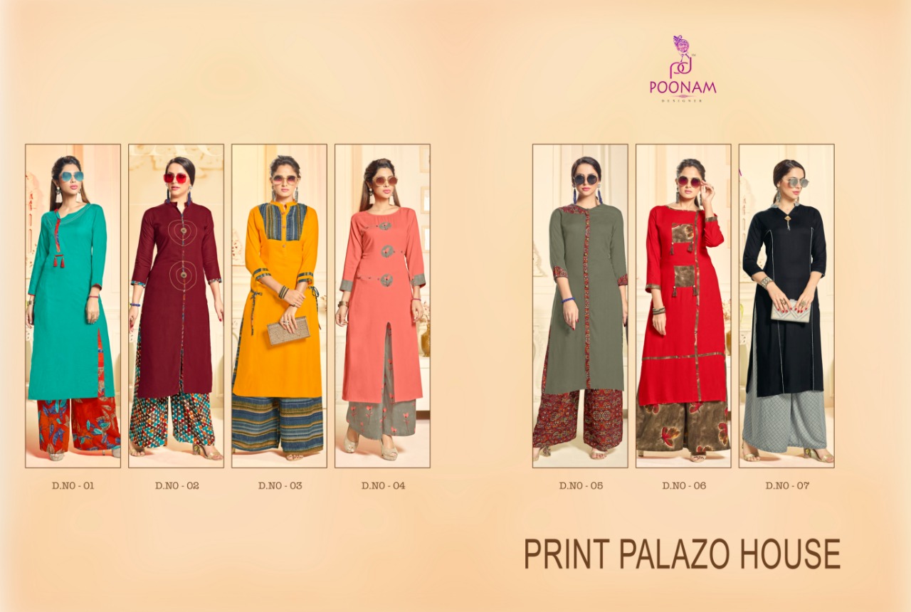Print Plazo House By Poonam 01 Series Fancy Kurti With Plazzo Catlog Wholesale Dealer And Supplier Surat