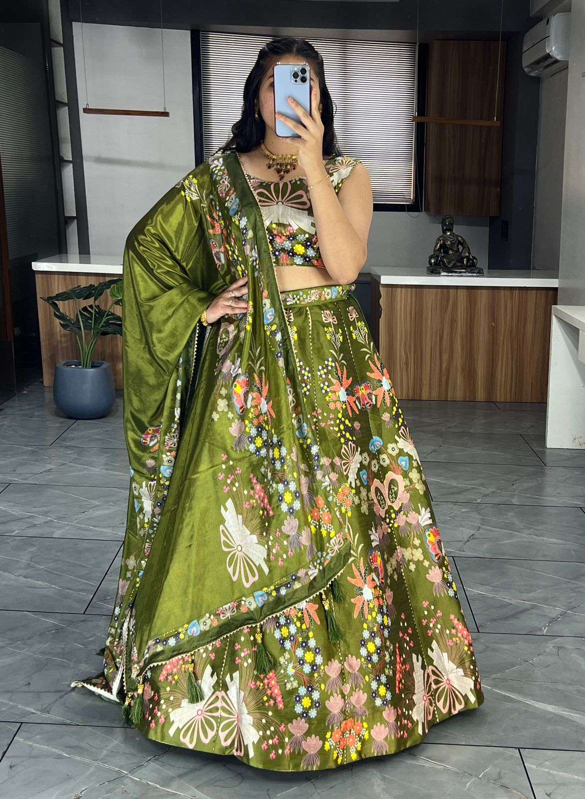 😍Shop Our Latest Exclusive Printed lehenga creation from our Floral and Geometric combination which looks vibrant and Showcase beauty of a woman.✨🌸