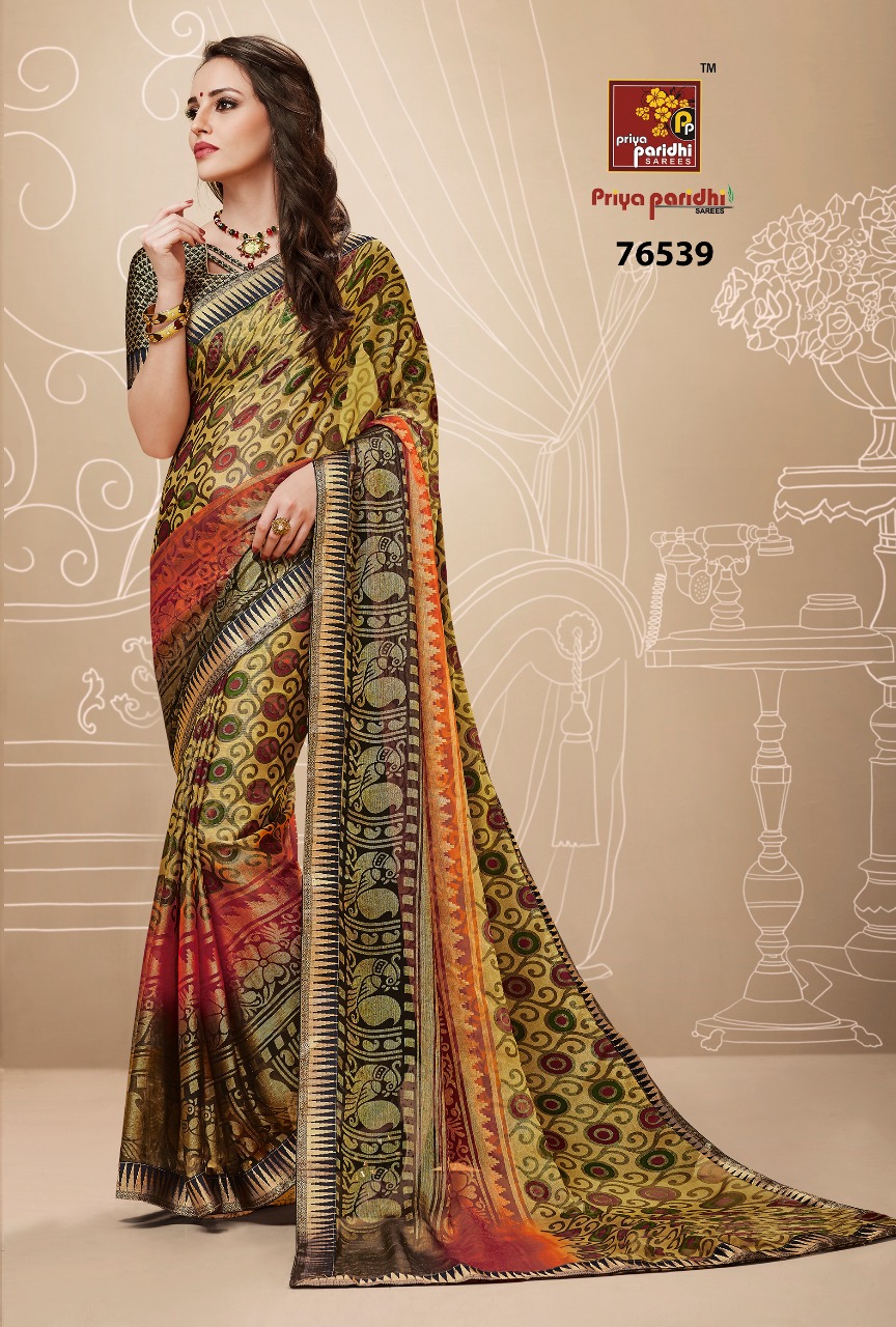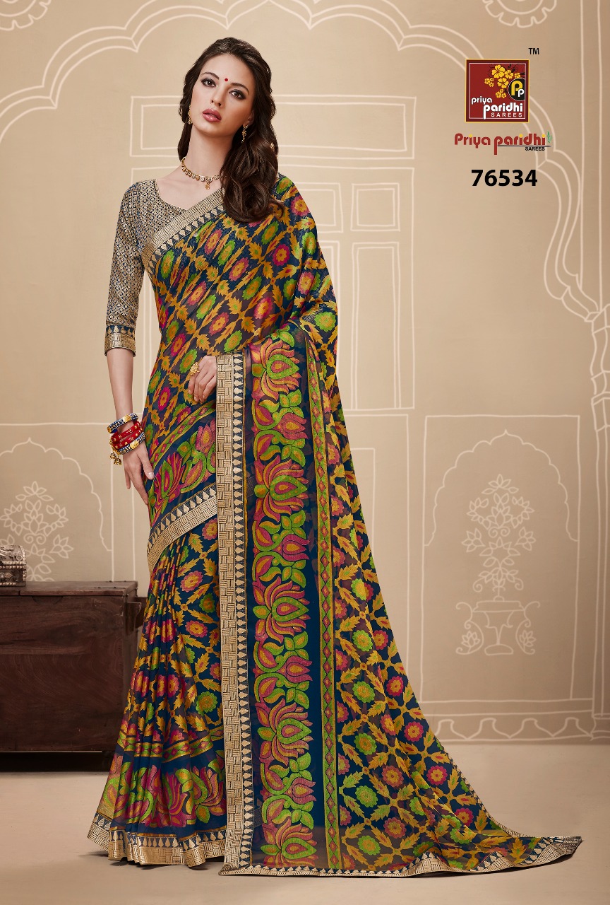 Buy Online Priya Paridhi Ahiri 76531 Series Fancy Brasso Printed Saree Catlog Wholesale Dealer And Supplier Surat 11 Pcs of Full Catalogue at Wholesale Price. Looking for Priya Paridhi Ahiri 76531 Series Fancy Brasso Printed Saree Catlog Wholesale Dealer And Supplier Surat Full Catalouge at Best Price? Buy Now Priya Paridhi Ahiri 76531 Series Fancy Brasso Printed Saree Catlog Wholesale Dealer And Supplier Surat at Wholesale Rate of Rs 8261 with Total 11 Pcs from authroized dealer and supplier of PRIYA PARIDHI Brand. Cost of Each piece is just only Rs 751 which is very low and affordable price to resale the product in your retail store ,This is Surat based Wholesale Supplier & Dealer of PRIYA PARIDHI Brand. Click on Brand name to Know more about PRIYA PARIDHI Brand's products.Call or Whatsapp on 9898838984 for booking or enquiry