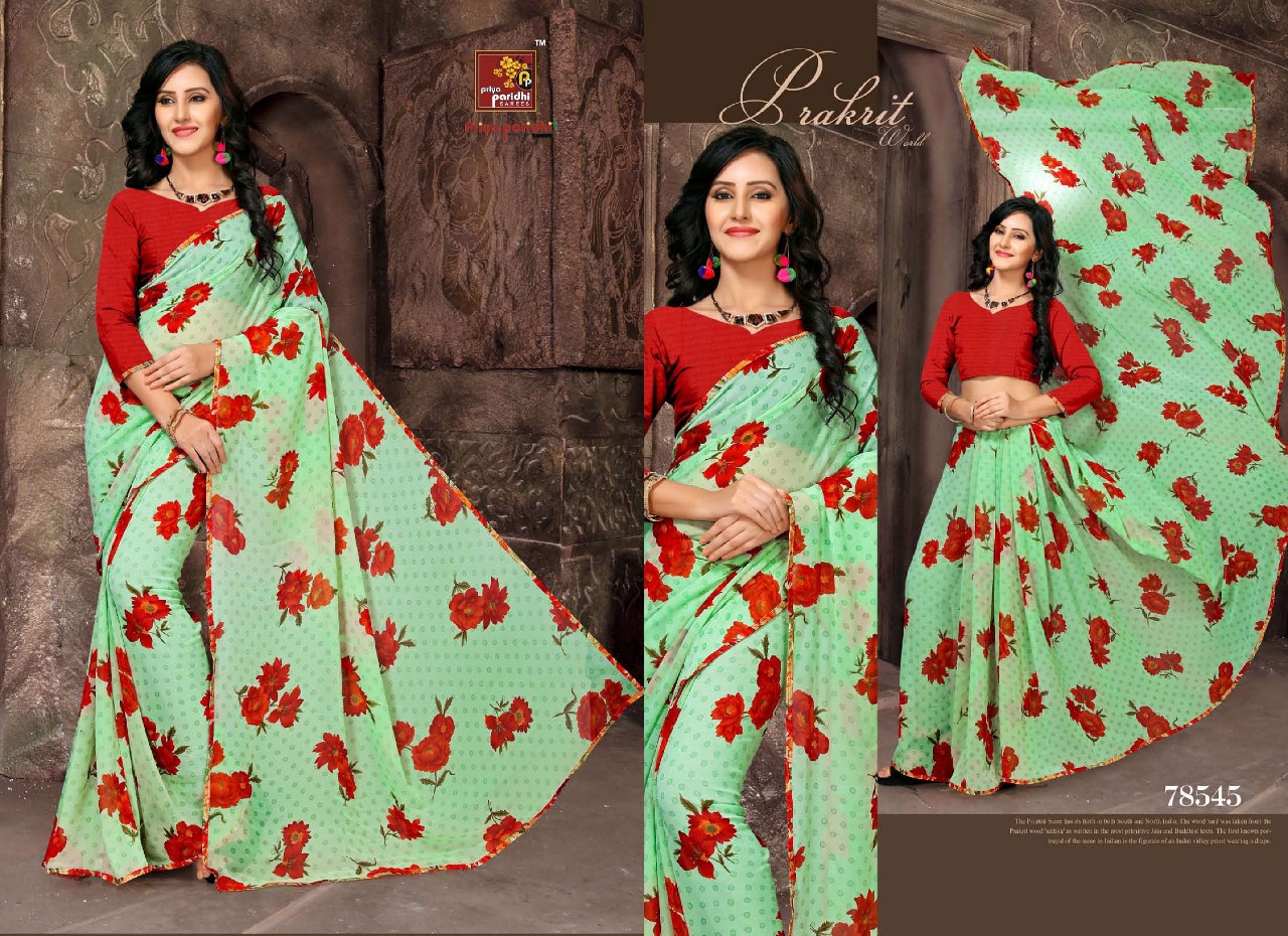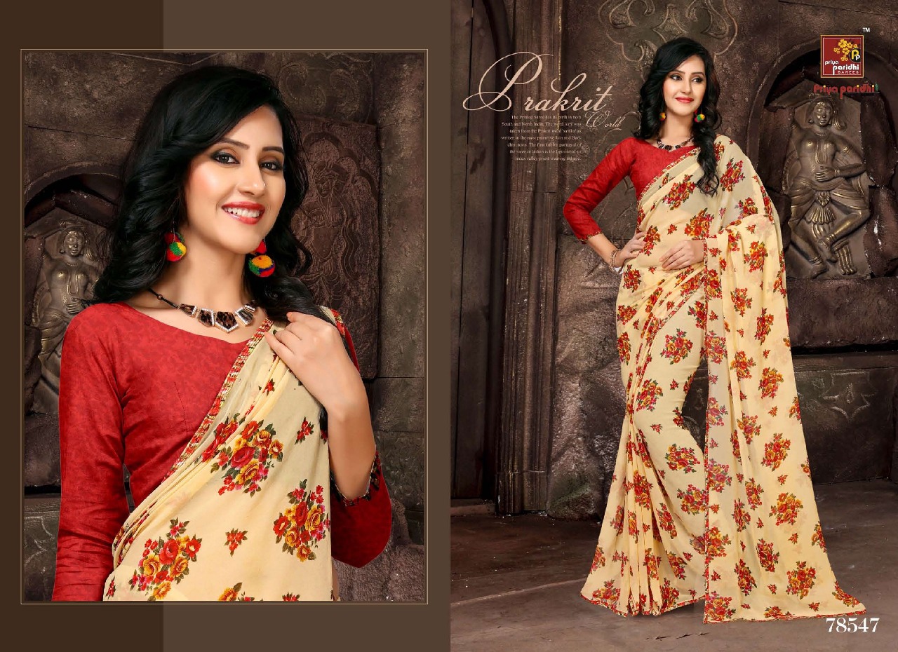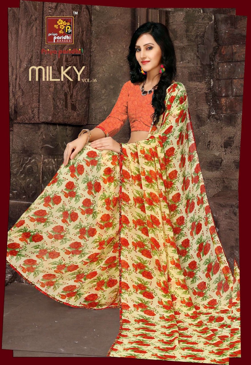 Buy Online Priya Paridhi Milky 78541 Series Designer Flower Printed Georgette Saree Catlog Wholesale Dealer And Supplier Surat 10 Pcs of Full Catalogue at Wholesale Price. Looking for Priya Paridhi Milky 78541 Series Designer Flower Printed Georgette Saree Catlog Wholesale Dealer And Supplier Surat Full Catalouge at Best Price? Buy Now Priya Paridhi Milky 78541 Series Designer Flower Printed Georgette Saree Catlog Wholesale Dealer And Supplier Surat at Wholesale Rate of Rs 3960 with Total 10 Pcs from authroized dealer and supplier of PRIYA PARIDHI Brand. Cost of Each piece is just only Rs 396 which is very low and affordable price to resale the product in your retail store ,This is Surat based Wholesale Supplier & Dealer of PRIYA PARIDHI Brand. Click on Brand name to Know more about PRIYA PARIDHI Brand's products.Call or Whatsapp on 9898838984 for booking or enquiry