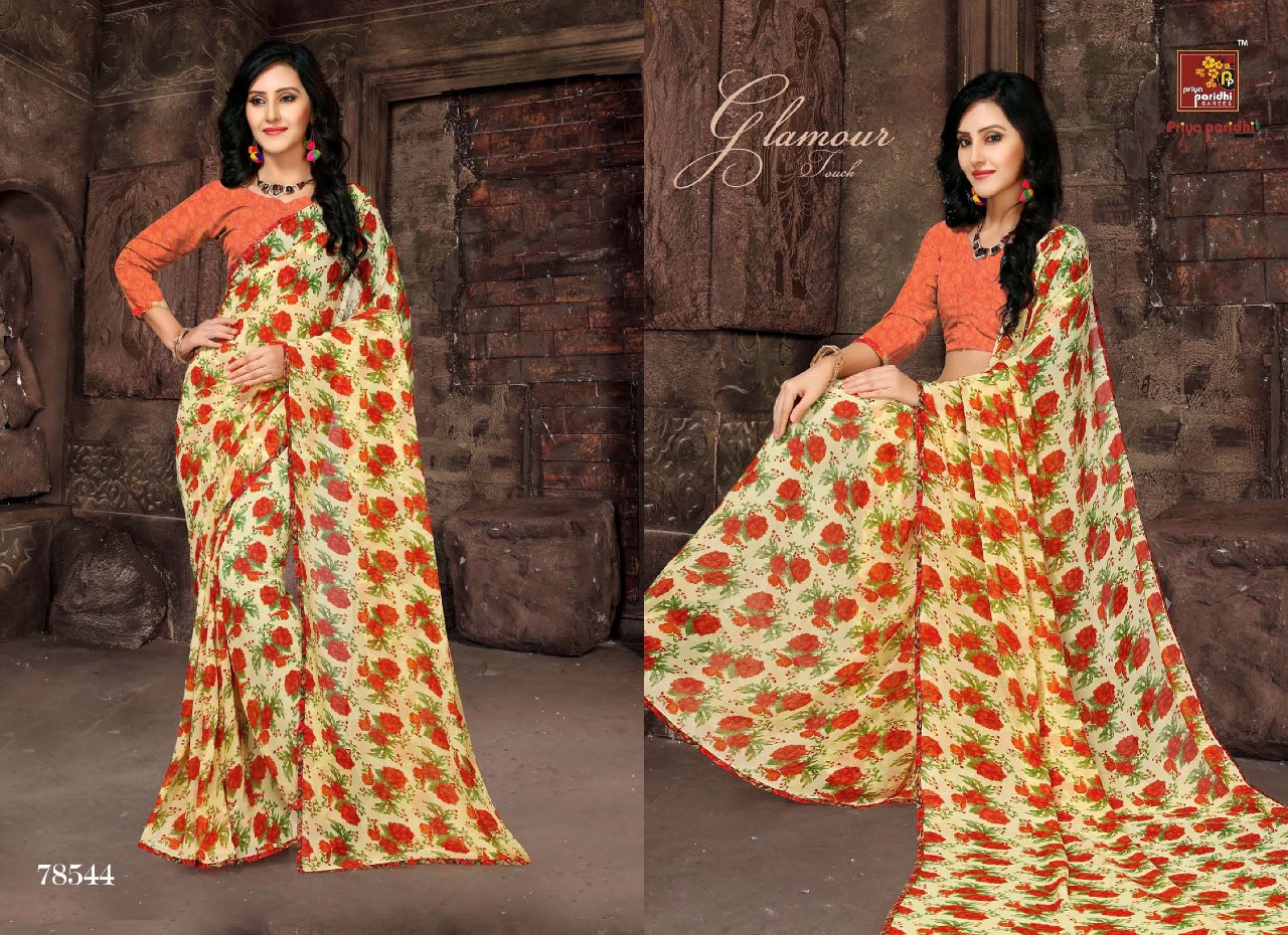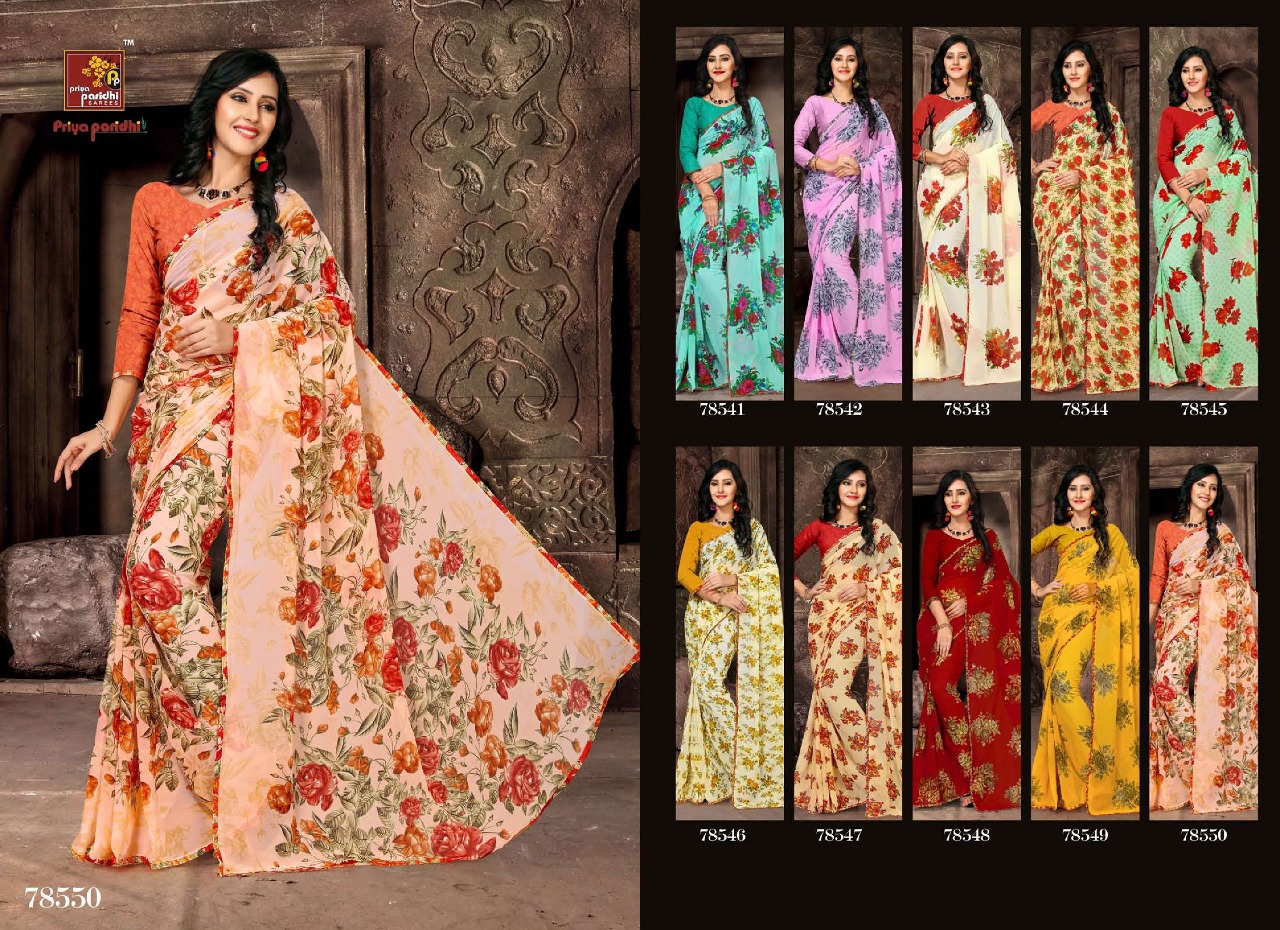Priya Paridhi Milky 78541 Series Designer Flower Printed Georgette Saree Catlog Wholesale Dealer And Supplier Surat