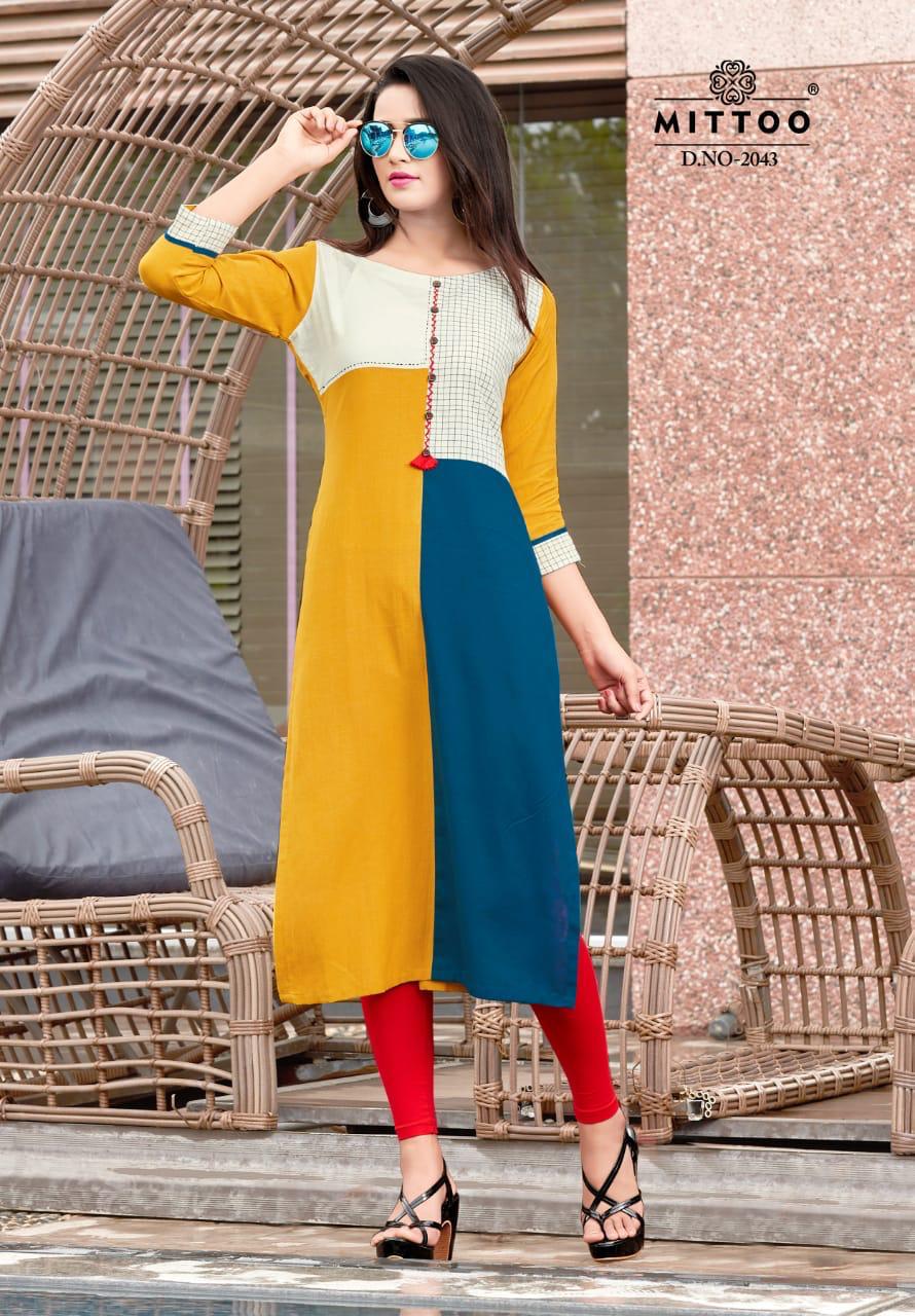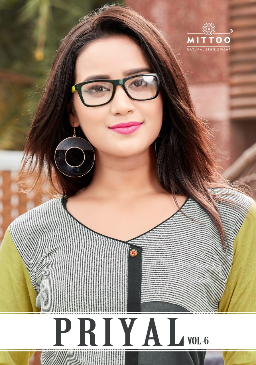 Buy Online Priyal Vol 6 By Mittoo 2041 Series Fancy Cotton Flex Kurti Collection Wholesaler Surat 8 Pcs of Full Catalogue at Wholesale Price. Looking for Priyal Vol 6 By Mittoo 2041 Series Fancy Cotton Flex Kurti Collection Wholesaler Surat Full Catalouge at Best Price? Buy Now Priyal Vol 6 By Mittoo 2041 Series Fancy Cotton Flex Kurti Collection Wholesaler Surat at Wholesale Rate of Rs 3560 with Total 8 Pcs from authroized dealer and supplier of MITTOO Brand. Cost of Each piece is just only Rs 445 which is very low and affordable price to resale the product in your retail store ,This is Surat based Wholesale Supplier & Dealer of MITTOO Brand. Click on Brand name to Know more about MITTOO Brand's products.Call or Whatsapp on 9898838984 for booking or enquiry