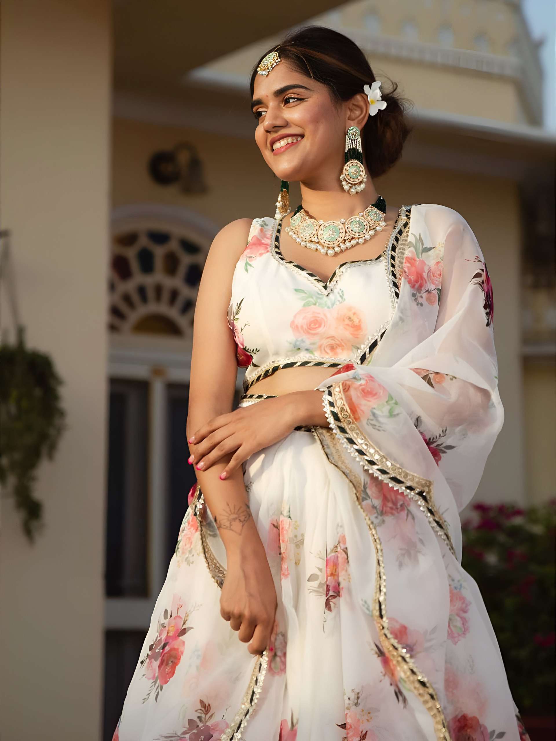 🤍 *White Floral Printed Elegant Lehenga Choli Set* ✨ Wedding • Graceful • Special Occasions 🌟