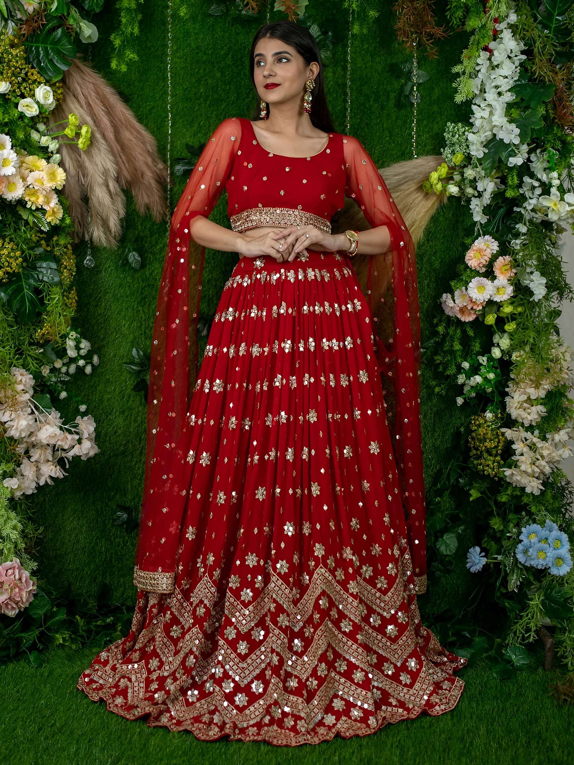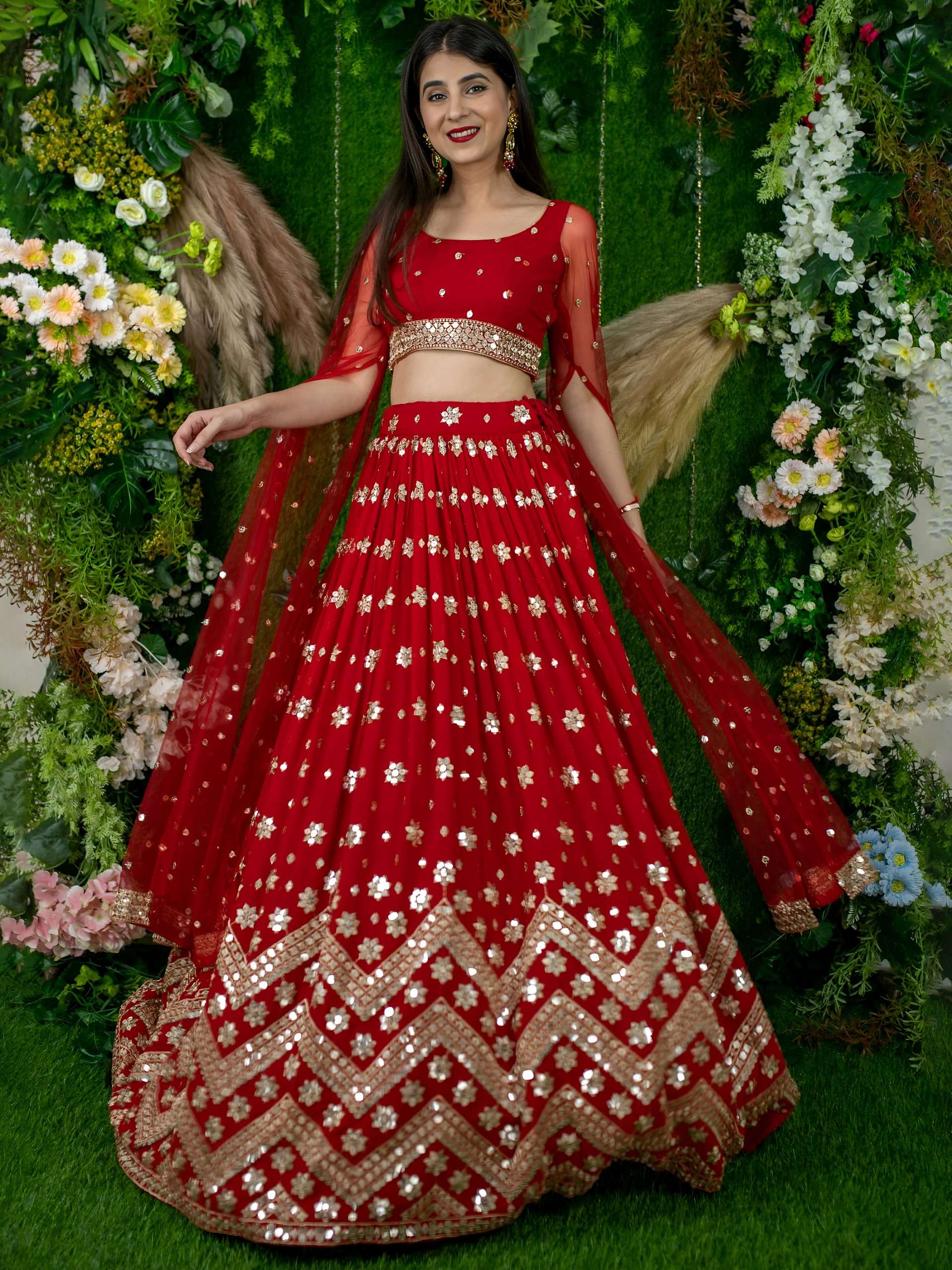 🌹 *Red Sequins Embroidered Lehenga with Designer Blouse & Net Dupatta* ✨ Wedding • Graceful • Special Occasions 🌟