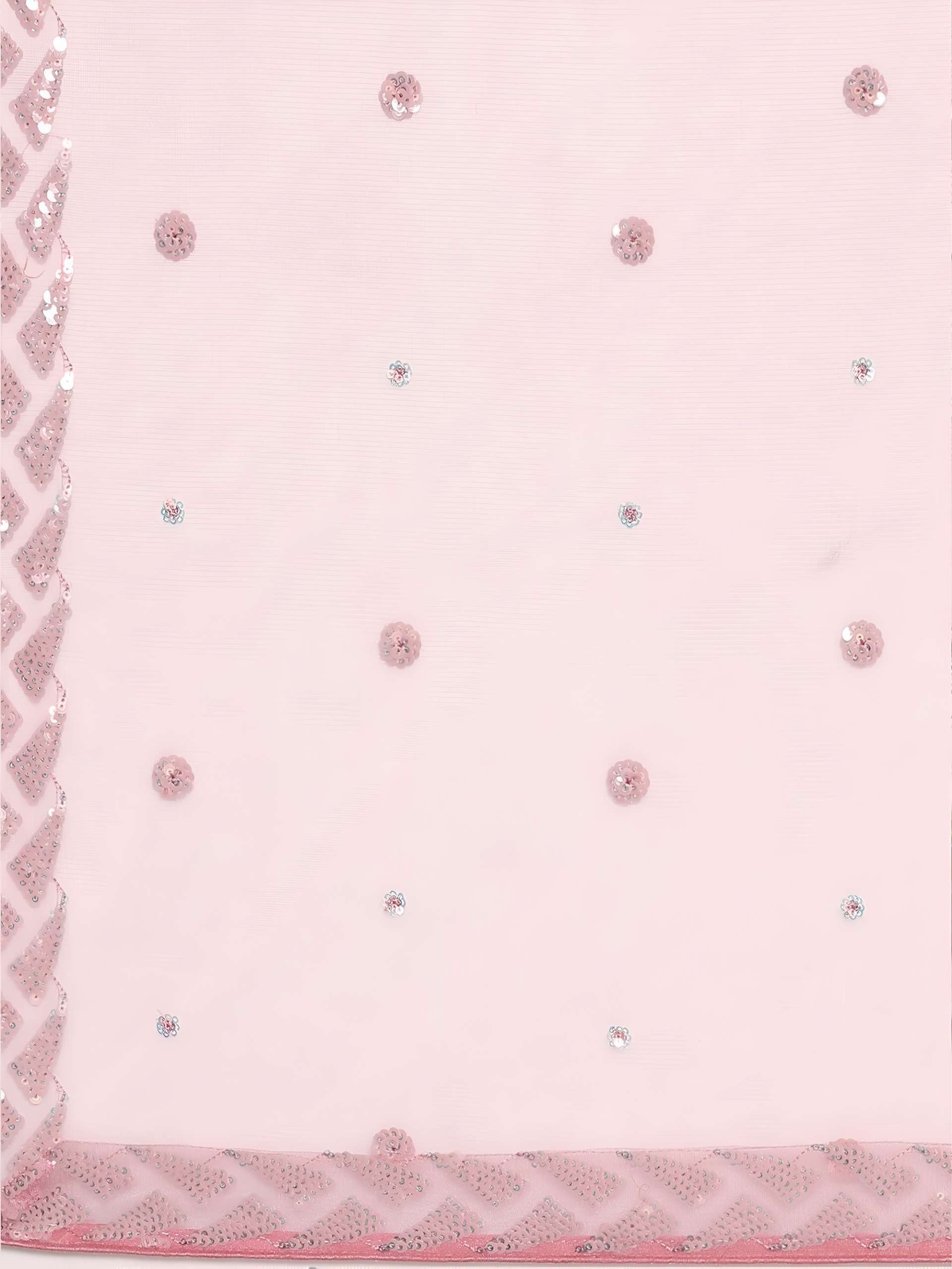 elegant sequins leaf embroidery layered over soft net fabric, creating a dreamy festive silhouette. Paired with a stylish embroidered blouse and lightweight dupatta, the ensemble is perfect for weddings, receptions, and grand celebrations, offering both comfort and luxury appeal.