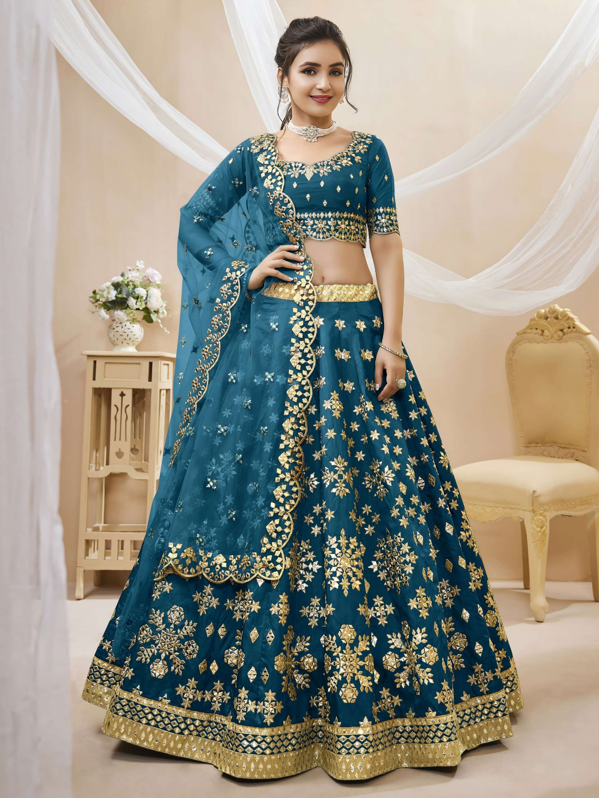 *✨ TEAL BLUE FOIL EMBROIDERED LEHENGA SET ✨*