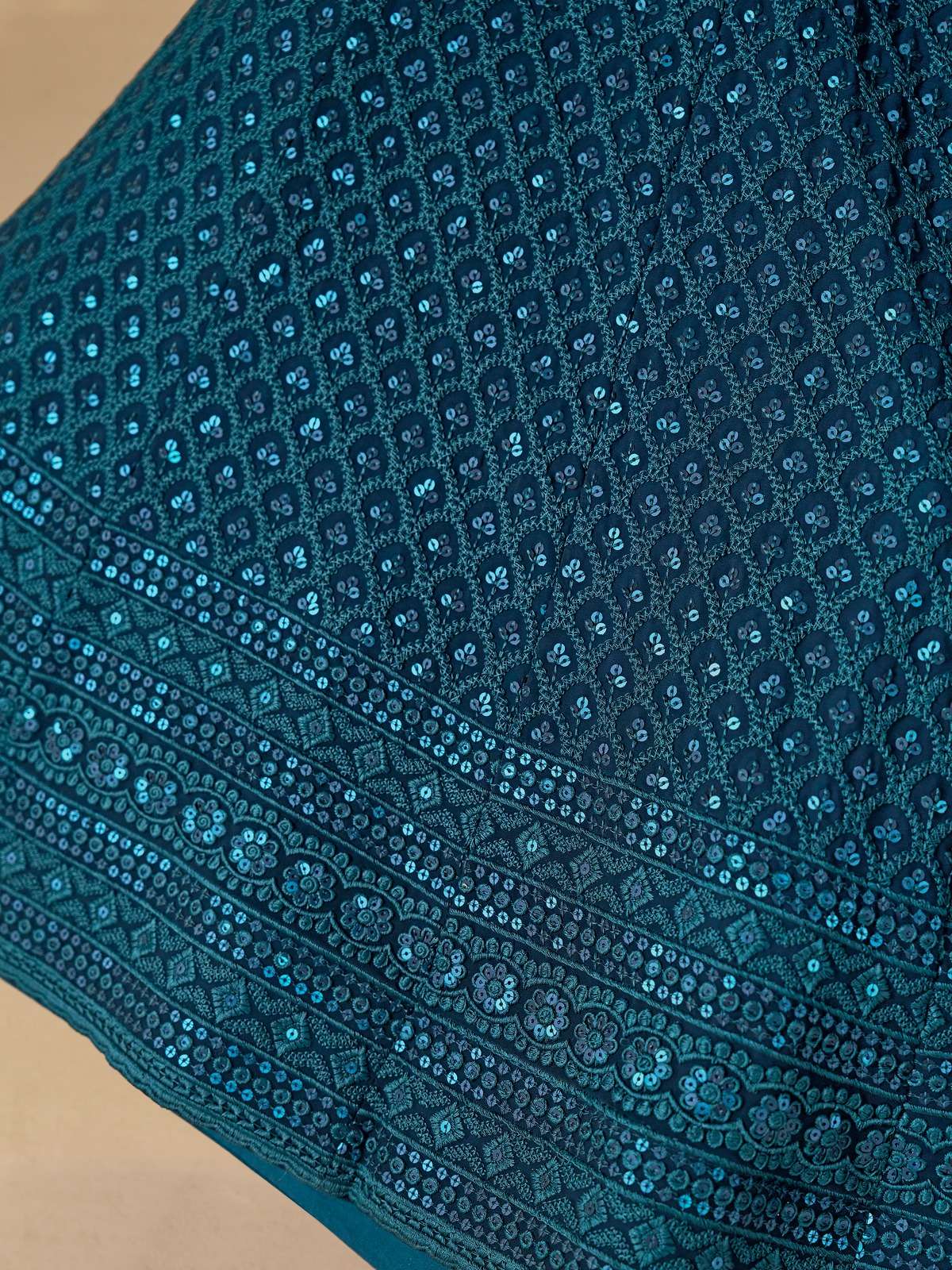 *Blouse (Unstitched)* Fabric: Georgette Color: Matching Work: Sequins & Resham Embroidery Work. Sleeves: Short Sleeves Size: up to 43"